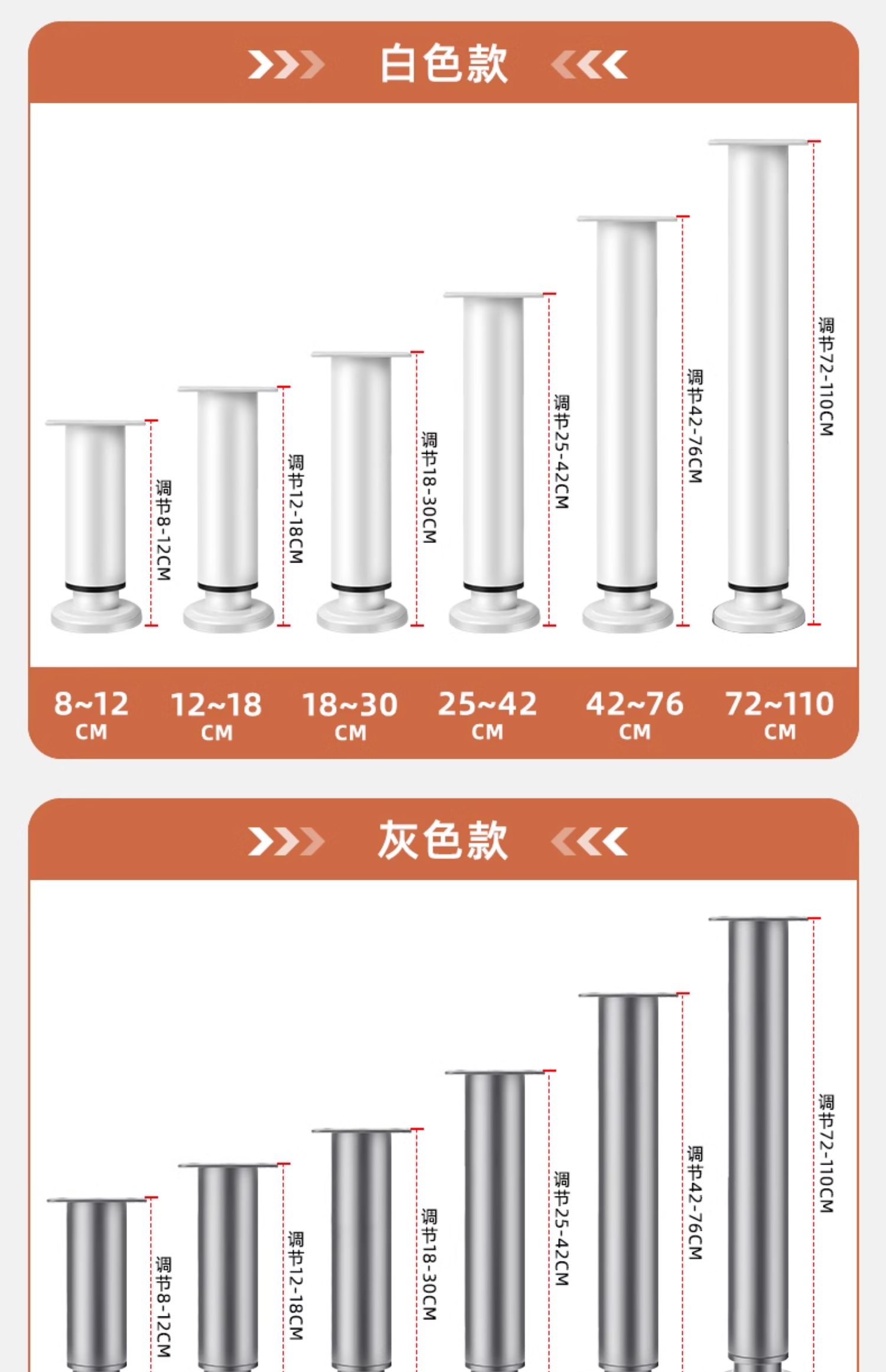 • 흰색 25cm/4개 [25-42c 조절 가능] 내하중 500kg