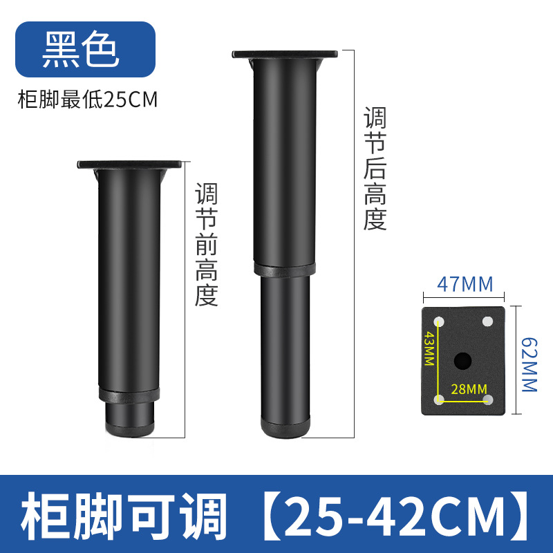• 블랙 25cm/1개 [25-42c 조절 가능] 내하중 500kg