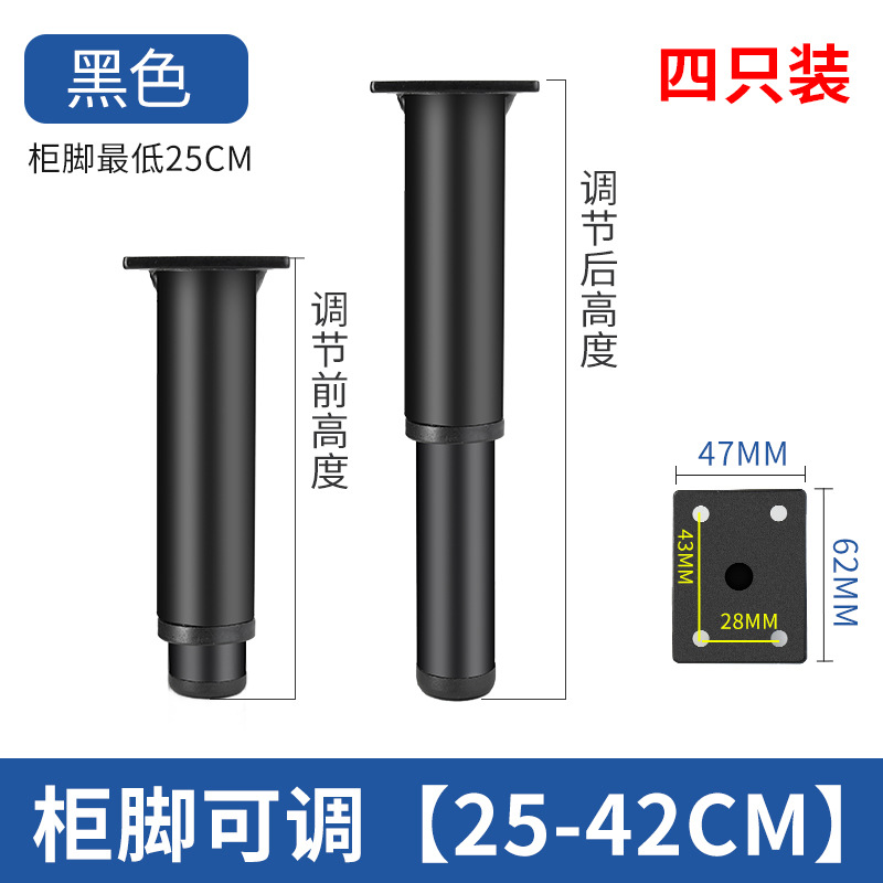 • 검정색 25cm/4개 [25-42c 조절 가능] 내하중 500kg