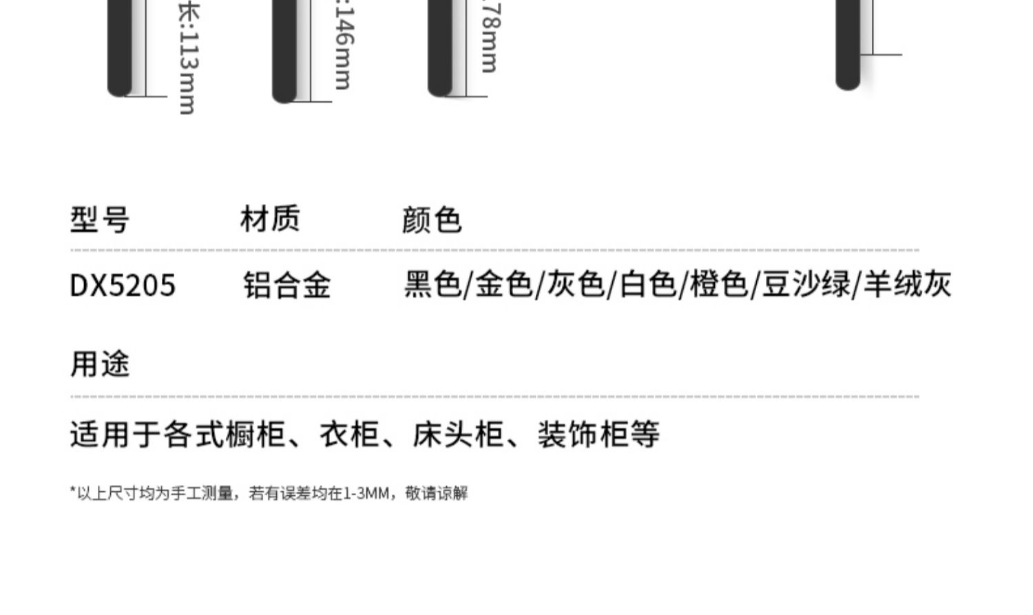 Yi Jia 현대 간단한 옷장 캐비닛 도어 핸들 검은 주방 캐비닛 도어 서랍 하드웨어 캐비닛 도어 핸들 완전한 책