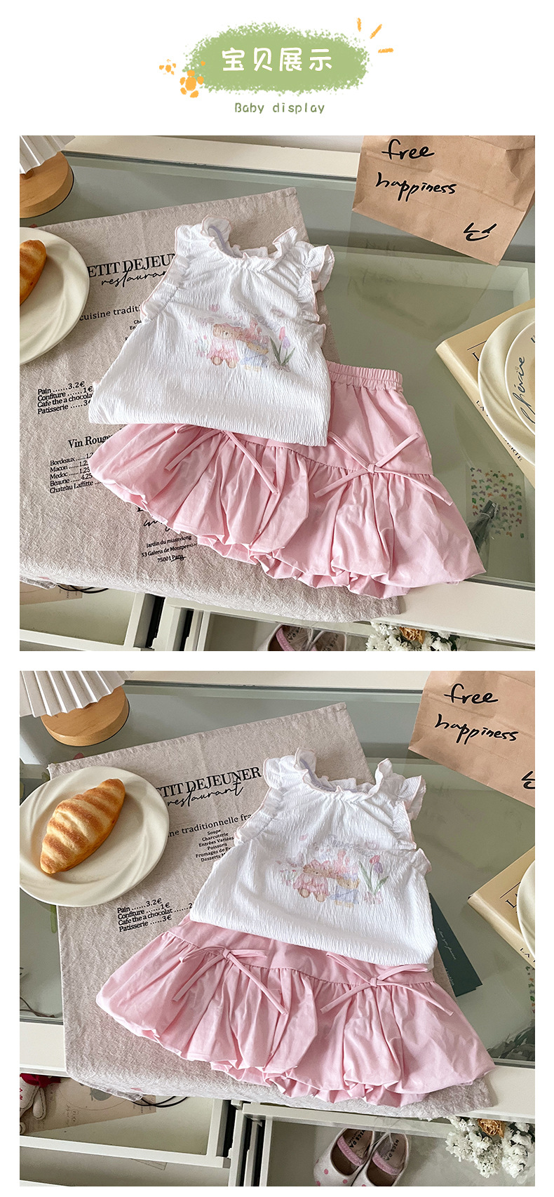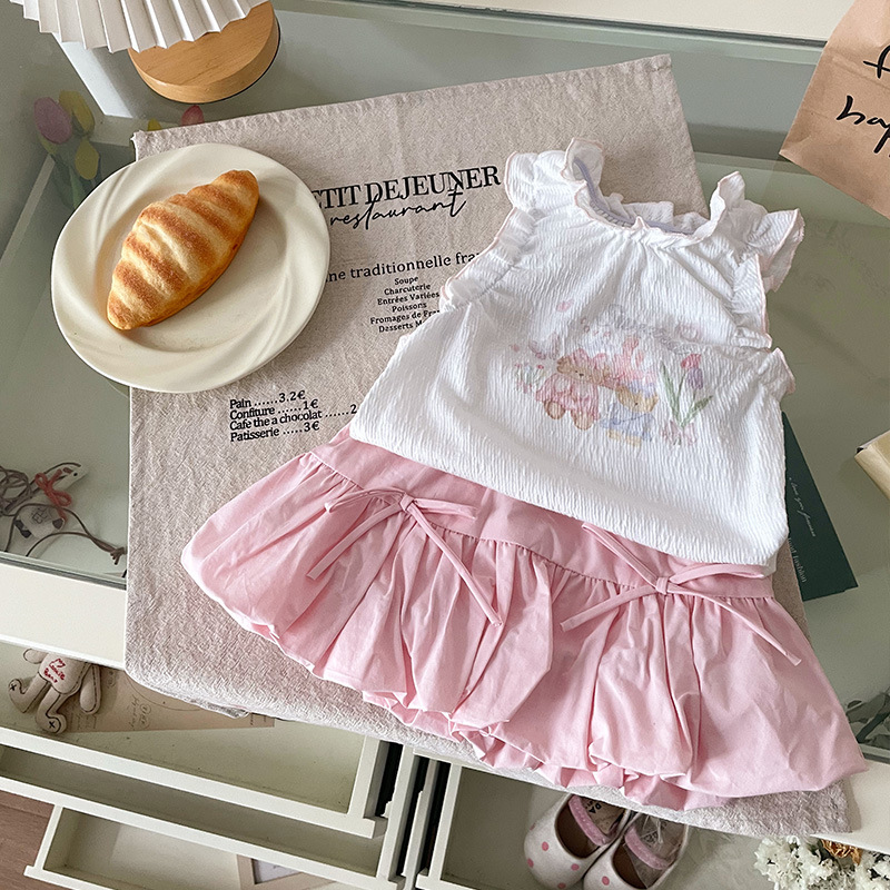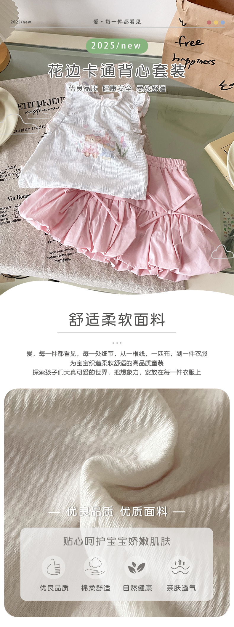 [재고] XT259073 여자 세트 2025 여름 멜빵 만화 조끼 레이스 나비 투투 스커트
