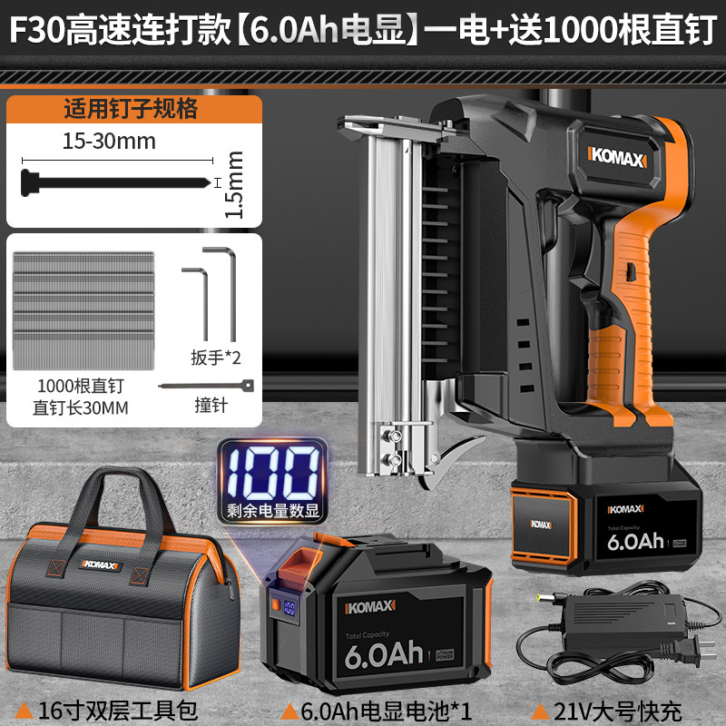• F30 고속 연속 모델 [6.0Ah 전자 디스플레이] 배터리 1개 + 무료 직선 못 1000개