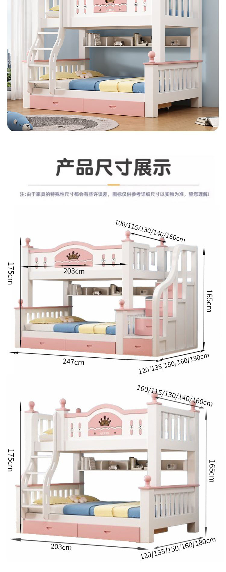 • [크라운모델은 집앞까지 배송됩니다] 상부침대 폭 160cm, 하부침대 폭 180cm