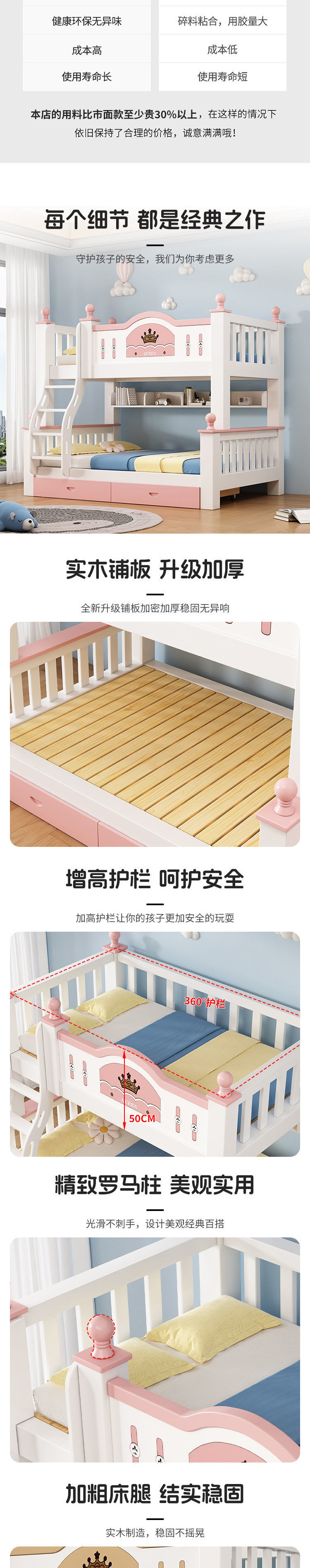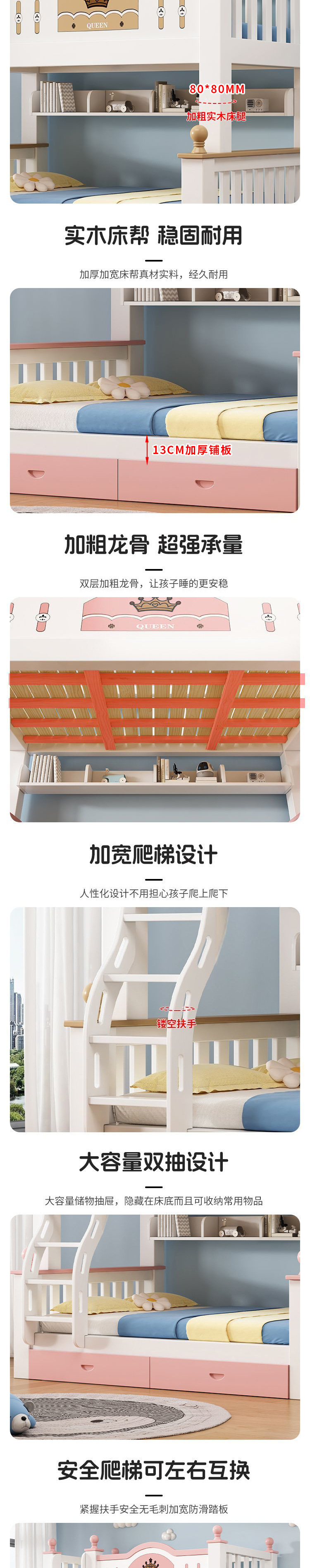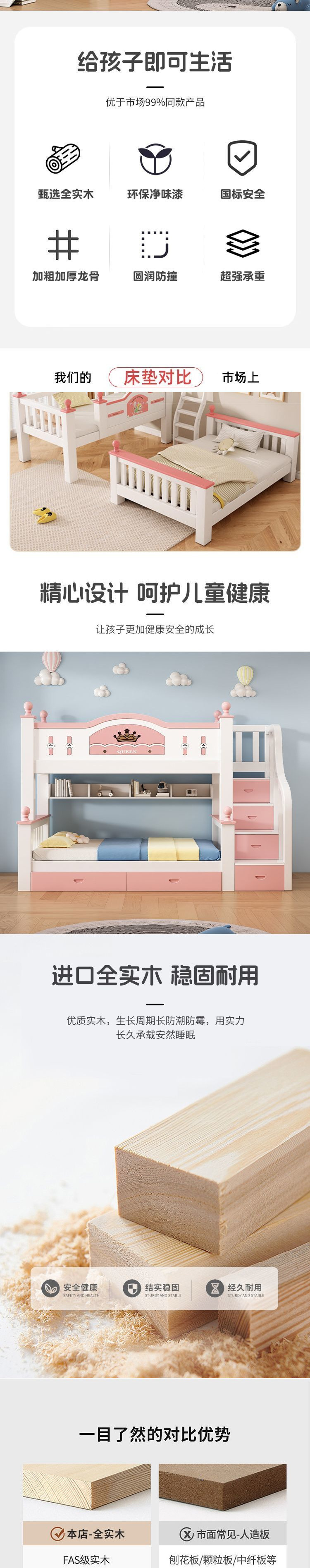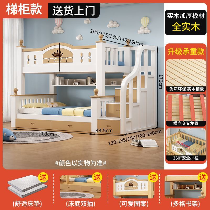 모든 단단한 나무 침대 홈 성인 엄마와 아이 침대 2 층 높고 낮은 굵은 조합 침대 어린이 공주 침대 작은 아파트스토어 가기