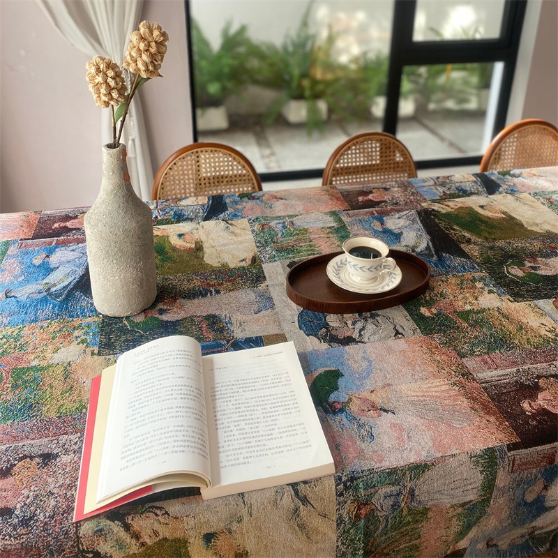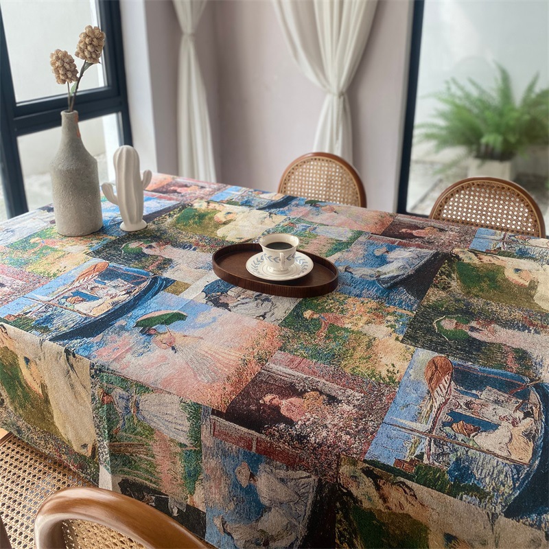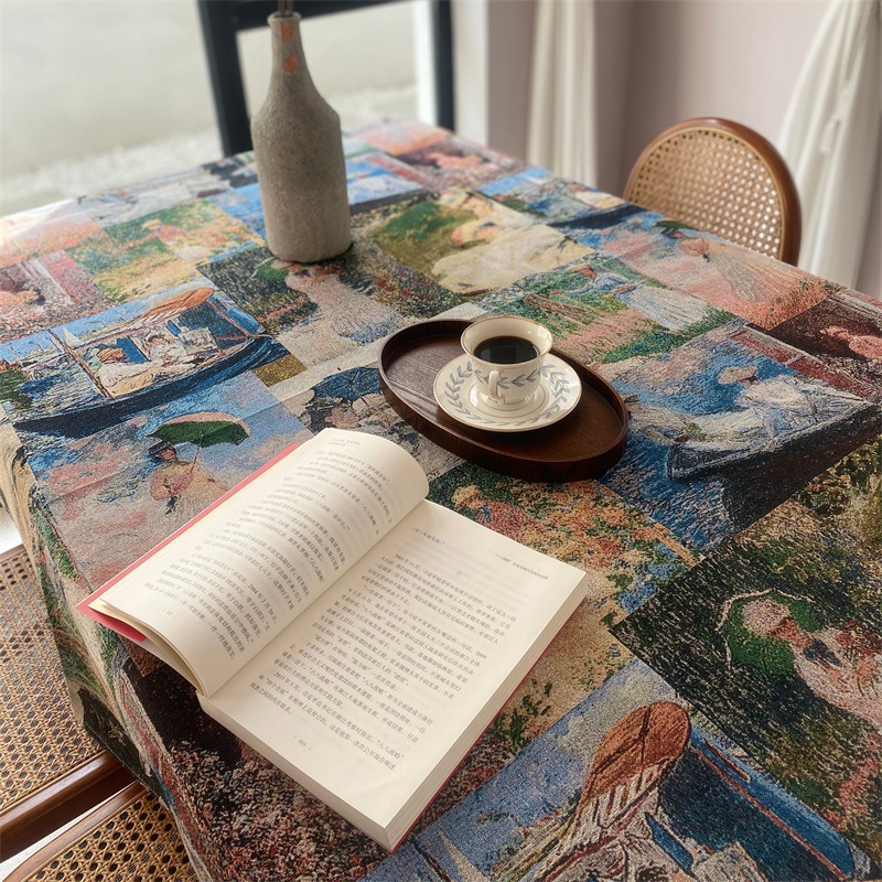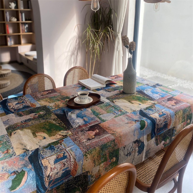 특수 예술적 복고풍 스타일 장식 커버 천 원사 염색 자카드 면 린넨 타블렛 고급 센스 데스크 안뜰 정원 테이블 천