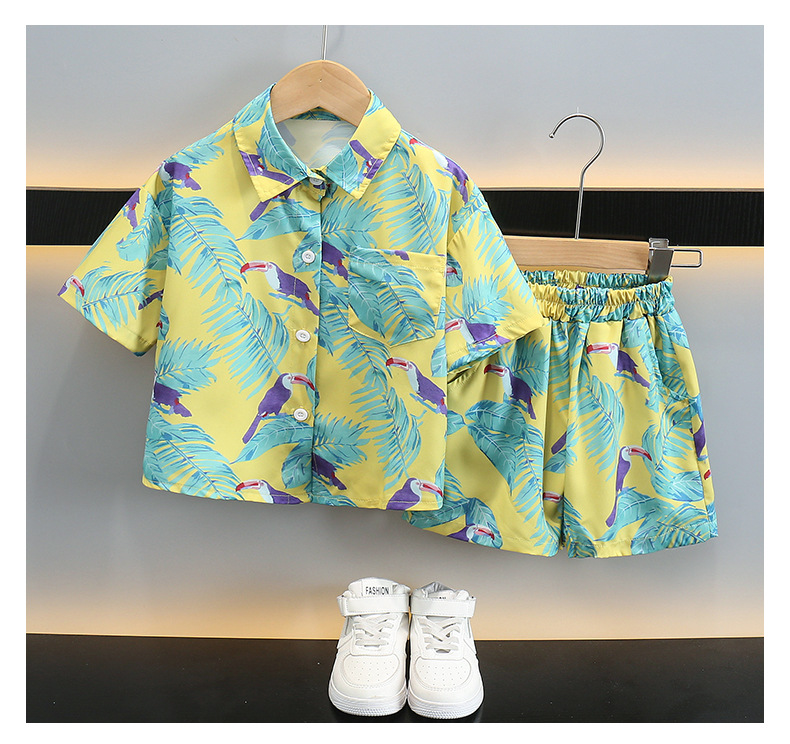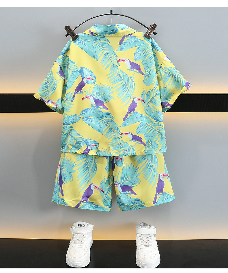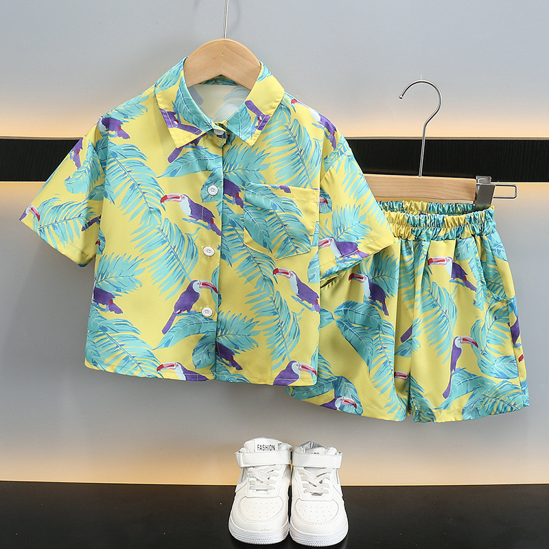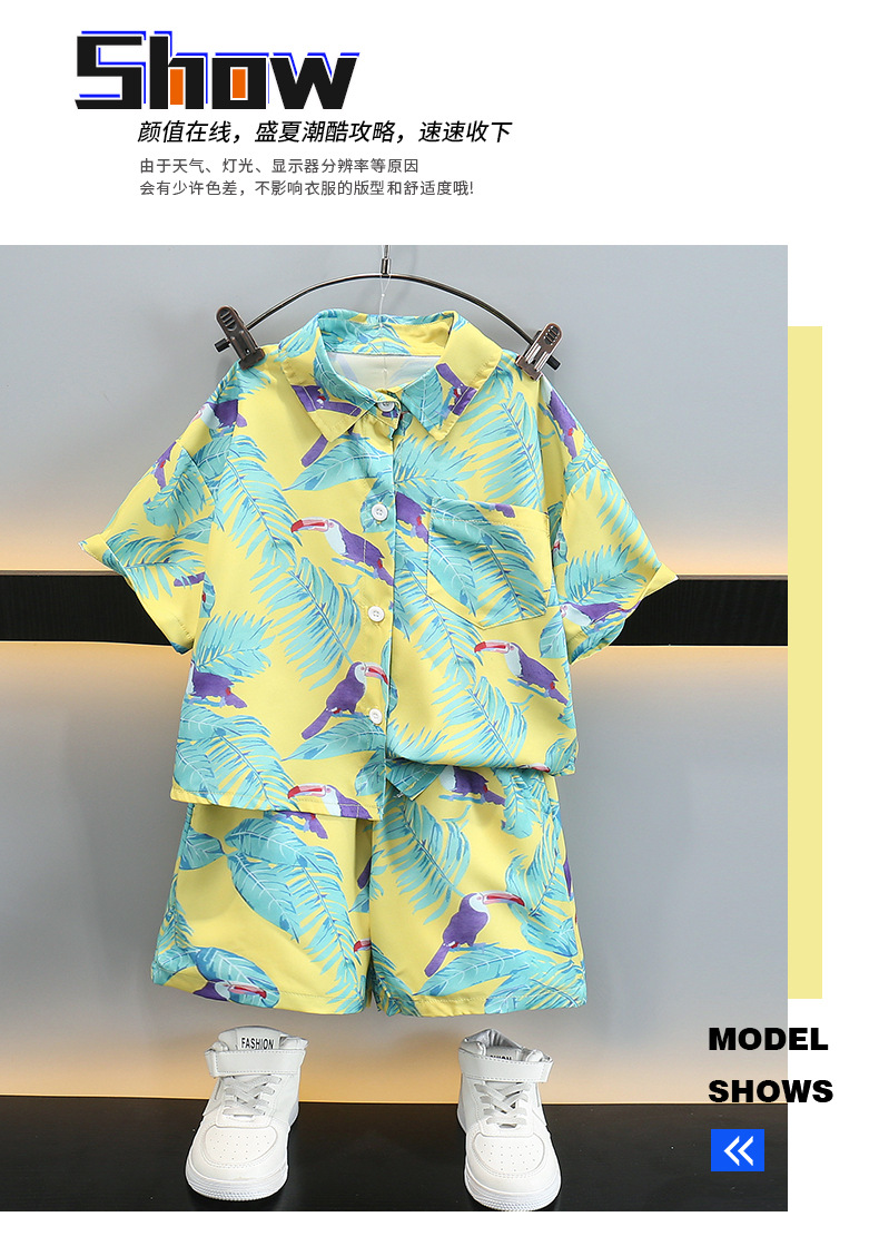 소년의 반팔 세트 2025 새로운 어린이 튀김 거리 깡패 잘 생긴 도파민 여름 남자 보물 그물 빨간 셔츠 여름스토어 가기