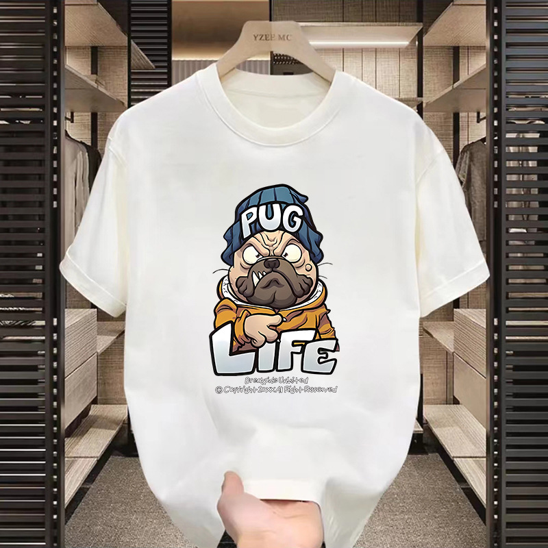 공장 도매 남성 미국 패션 동물 패턴 인쇄 느슨한 반 소매 탑 올 매치 반팔 티셔츠스토어 가기