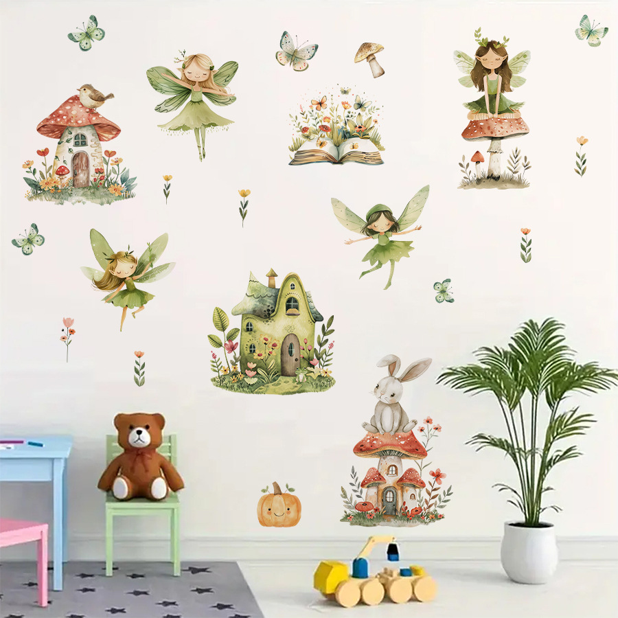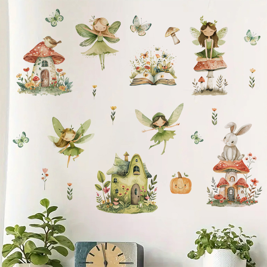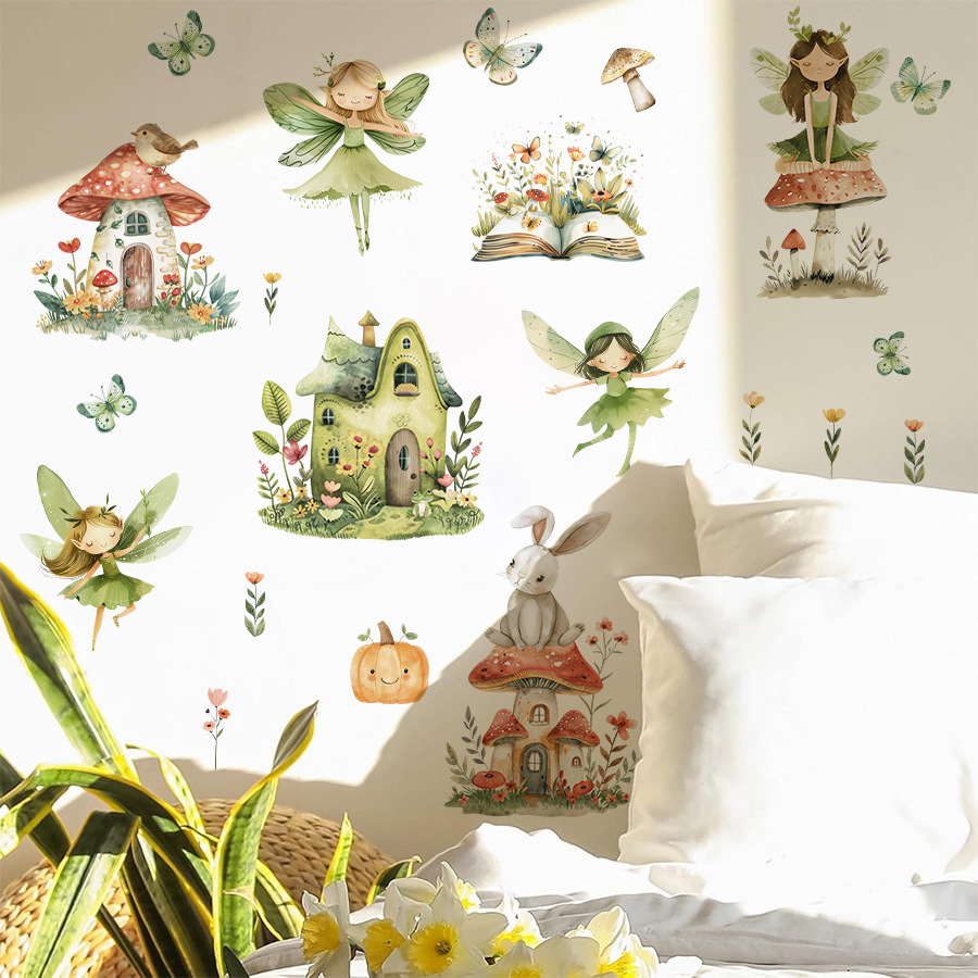 BR1253F 만화 나비 잠자리 요정 귀여운 오두막 자체 접착 애니메이션 침실 어린이 방 벽 스티커스토어 가기