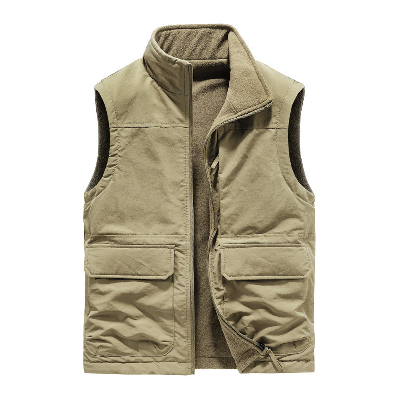 가을 겨울 기모 따뜻한 조끼 느슨한 플러스 사이즈 단색 작업 조끼 남자 유행 재킷