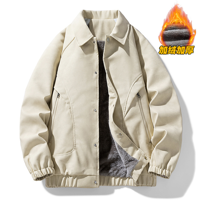 2025 새로운 플러스 사이즈 툴링 PU 가죽 남성 플러스 지방 증가 가죽 재킷 남성 옷깃 오토바이 뚱뚱한 남자 재고