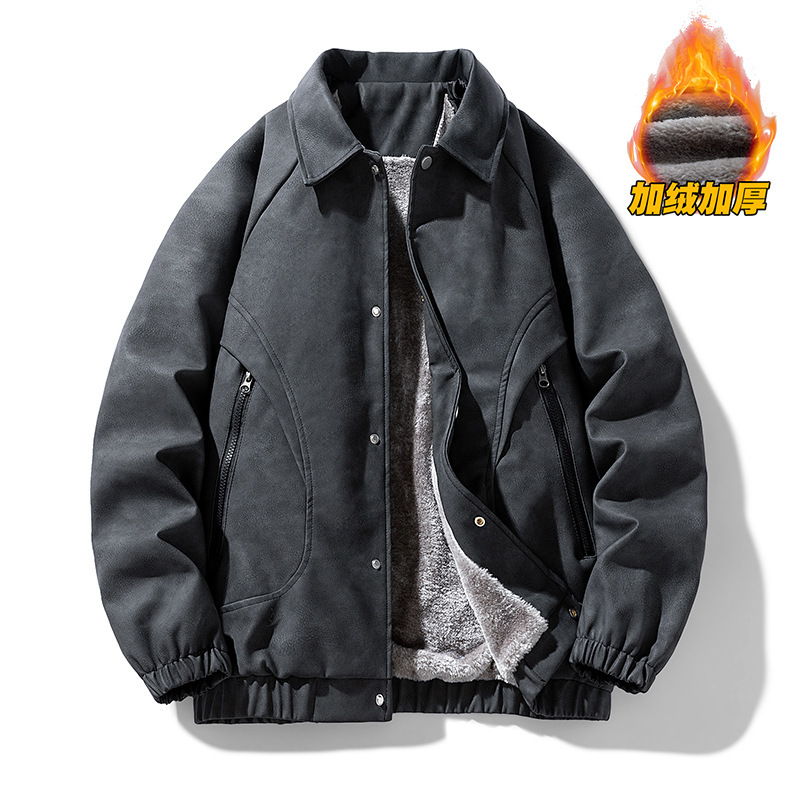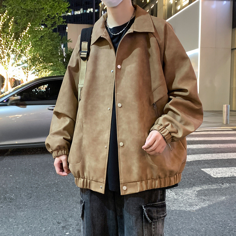 2025 새로운 플러스 사이즈 툴링 PU 가죽 남성 플러스 지방 증가 가죽 재킷 남성 옷깃 오토바이 뚱뚱한 남자 재고스토어 가기