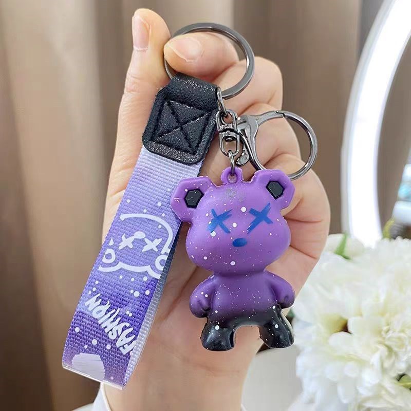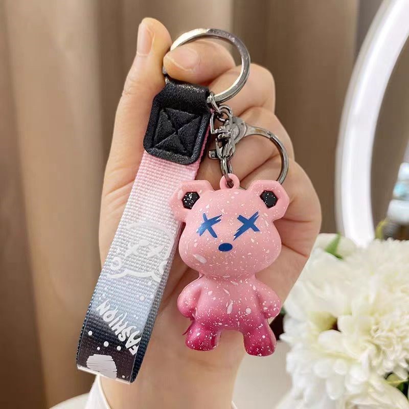만화 스타 카멜레온 베어 자동차 키 체인 그라디언트 폭력 곰 귀여운 인형 가방 보석 선물스토어 가기