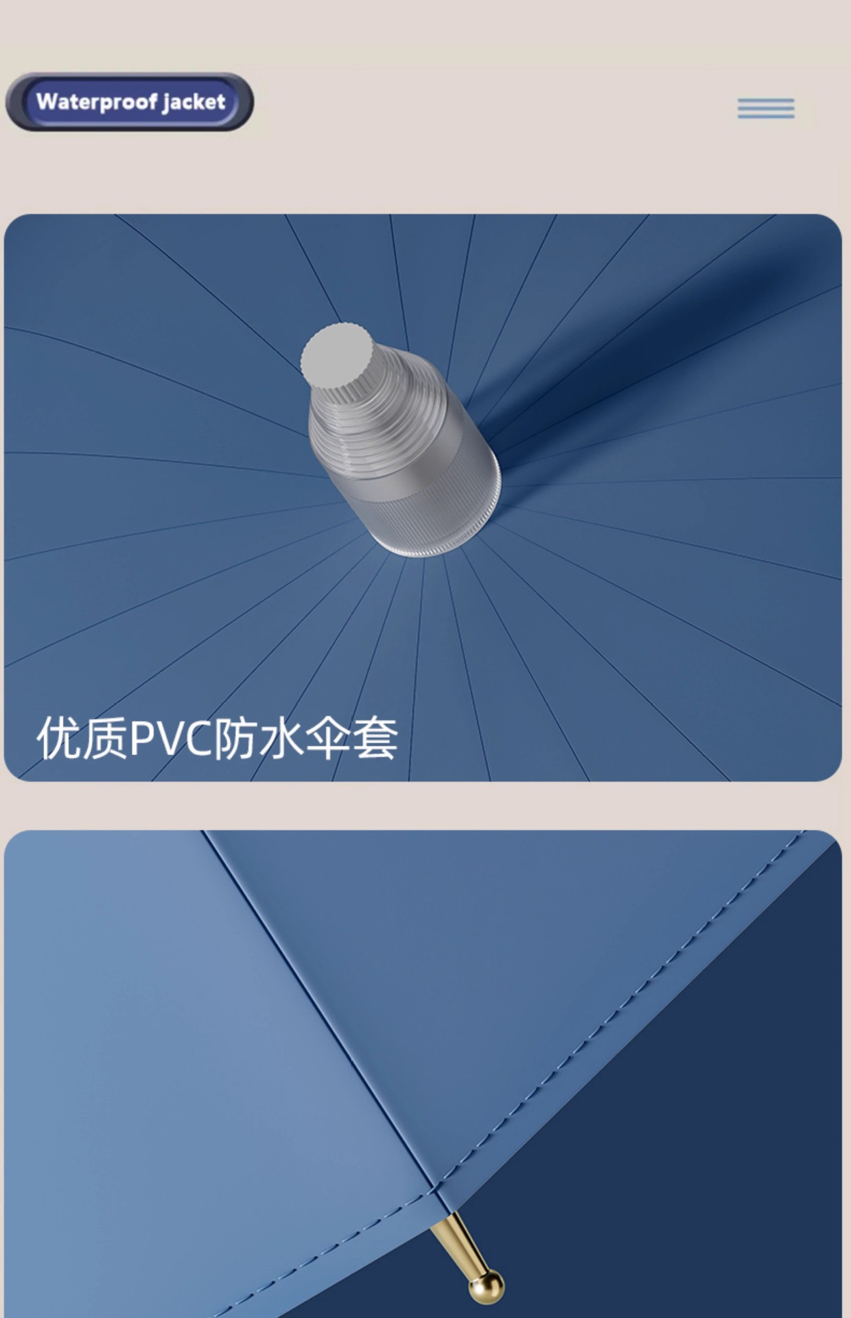• 방수 커버가 있는 진한 파란색 [자동 24본 - 컬러 매칭 곡선 핸들 - 금속 총알 - 섬유 질긴 뼈]