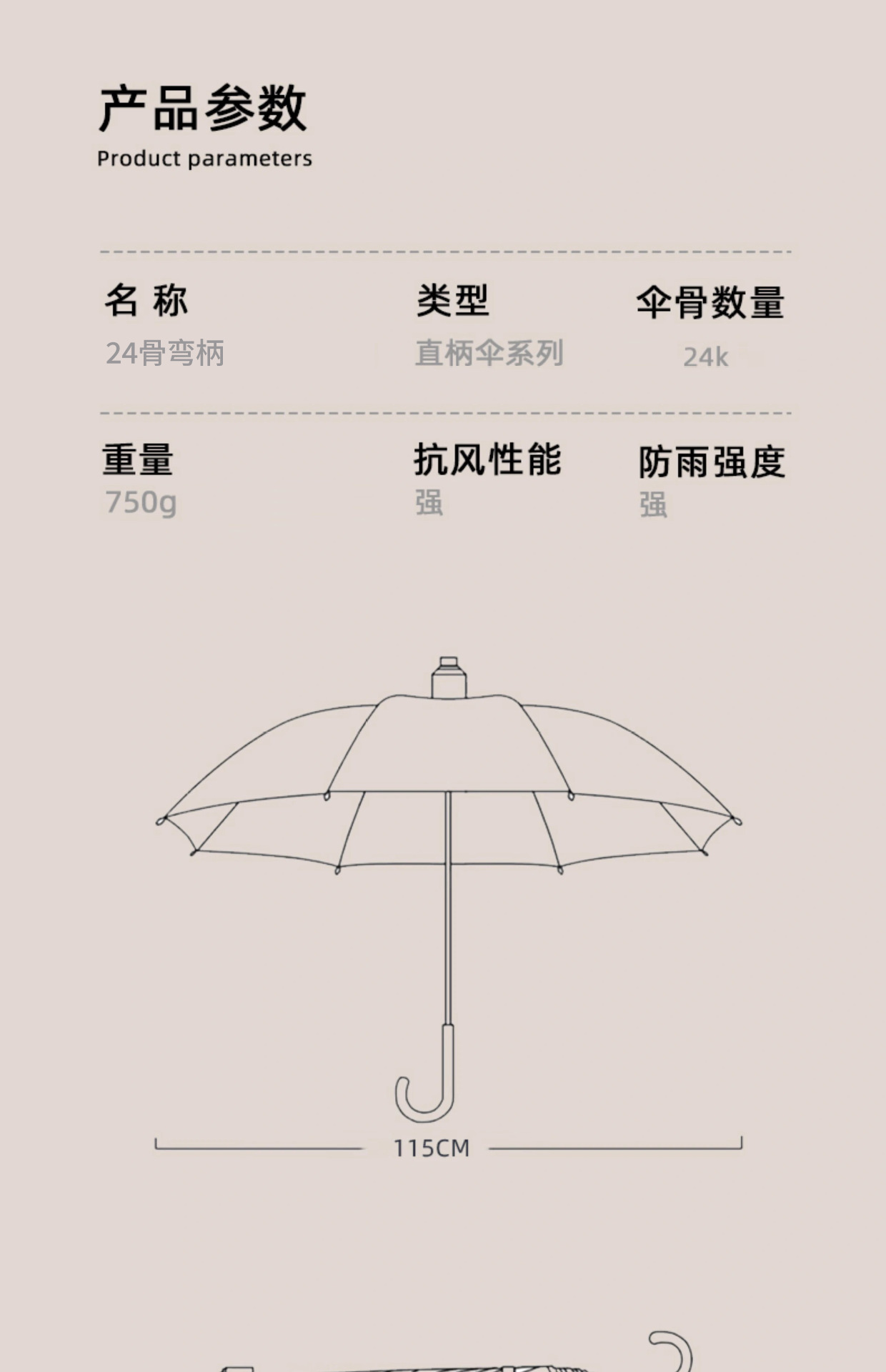 • 고급 그레이 [자동 24본 - 컬러 매칭 곡선 핸들 - 금속 총알 - 섬유 질긴 뼈] (무료 우산 커버)