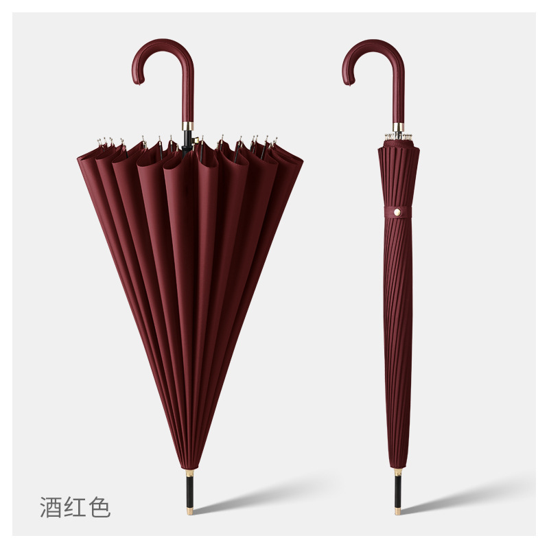 • 버건디 [수동 24본 - 컬러 매칭 곡선 손잡이 - 금속 총알 - 섬유 질긴 뼈] (무료 우산 커버)