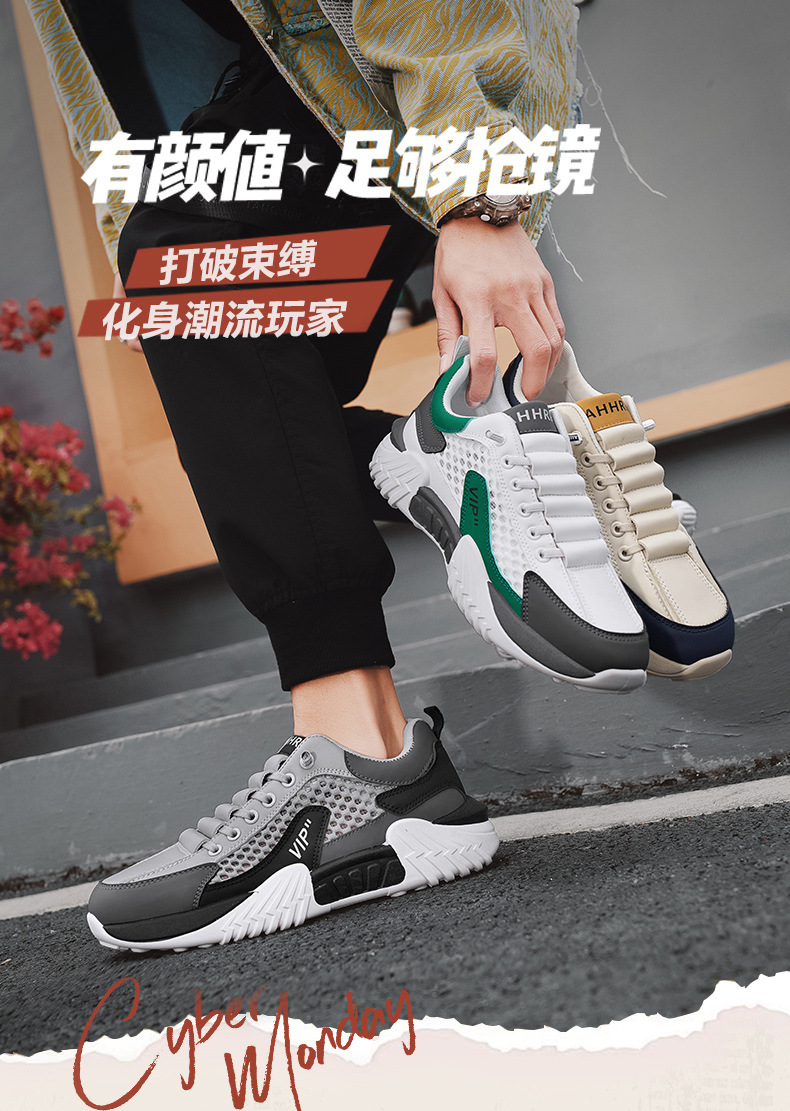 남성용 2025 사계절 통기성이 좋고 편안한 새로운 캐주얼 두꺼운 밑창 다용도 트렌디 남성 스포츠 트렌드 신발스토어 가기