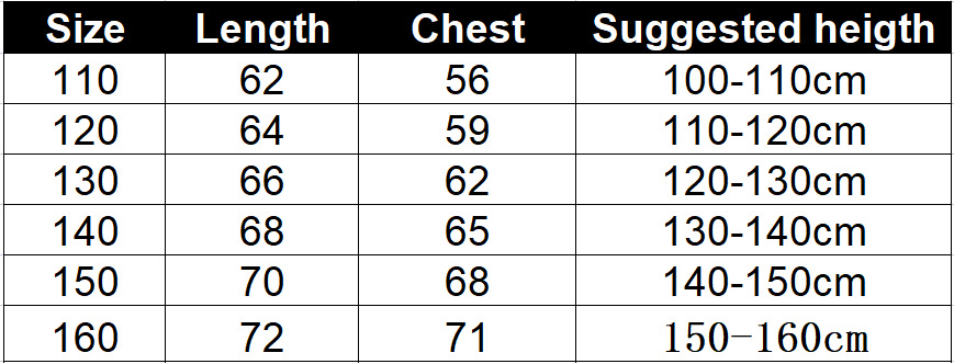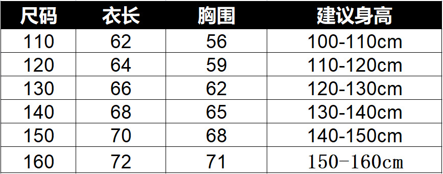 6个码数:  110  120  130  140  150 160