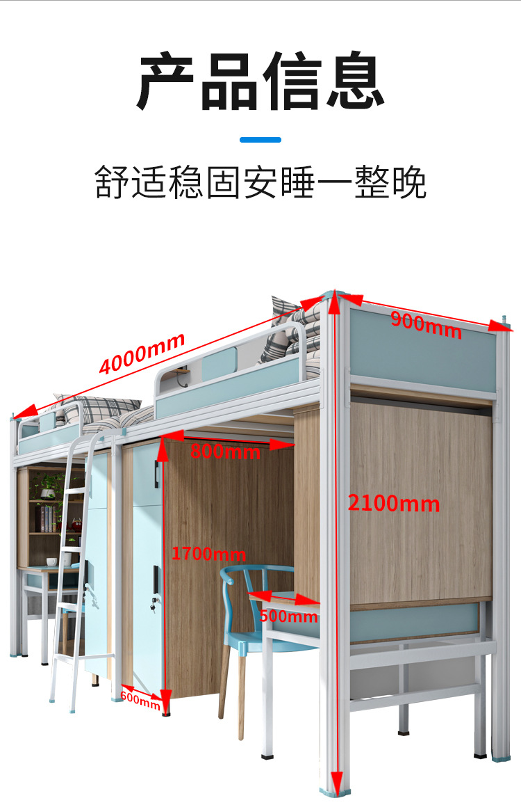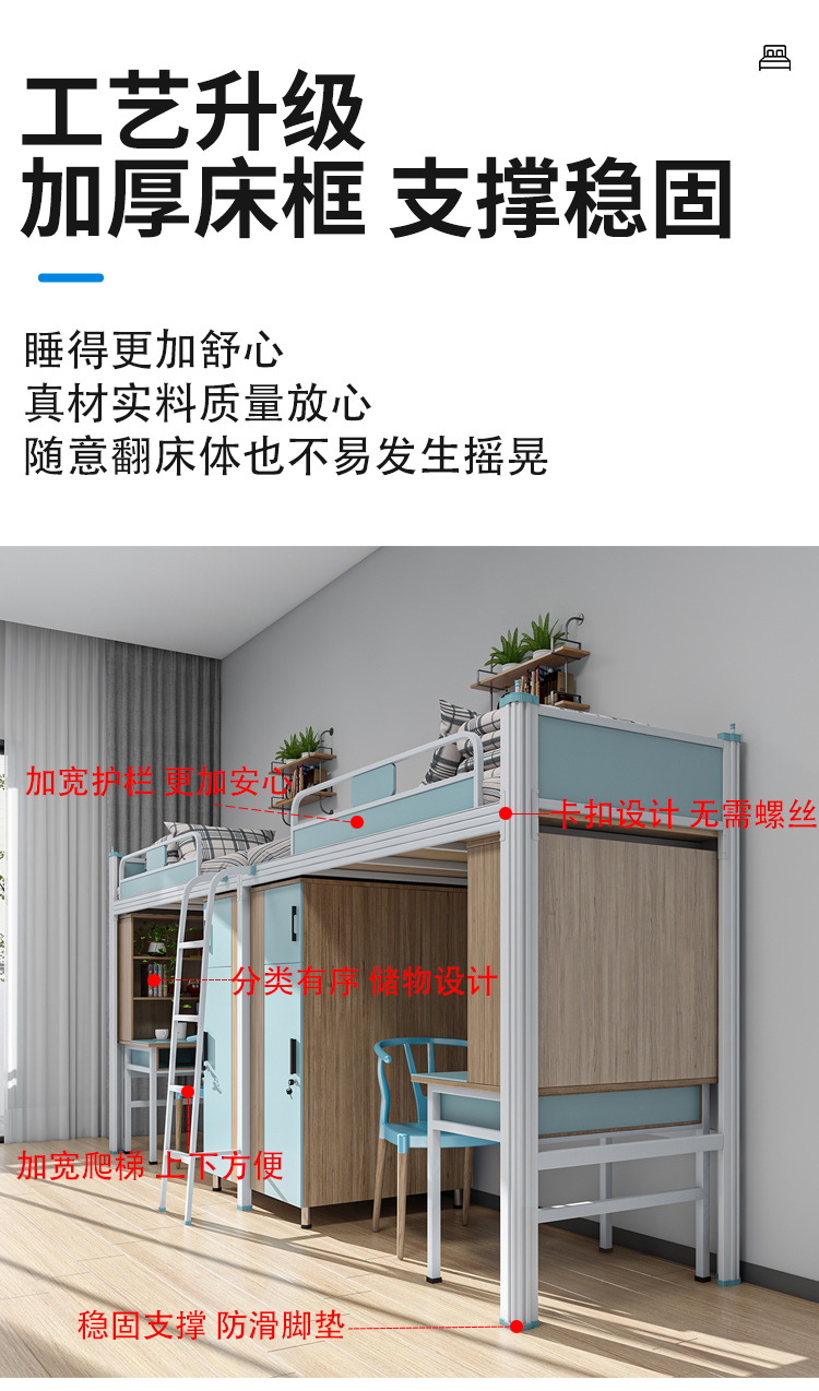 맞춤형 프로파일로 제작된 침대 위에 책상 | ‌ 학생 직원 기숙사 | ‌ 강철과 목재를 결합한 이층침대스토어 가기