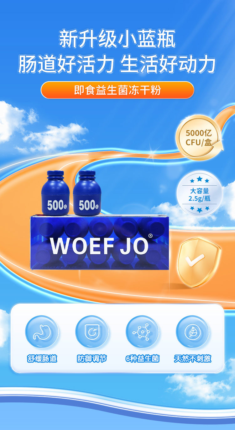 WOEF JO 작은 파란색 병 프로바이오틱스 10병/박스 500억 활성 박테리아 위장 프리바이오틱스 공식 정품스토어 가기