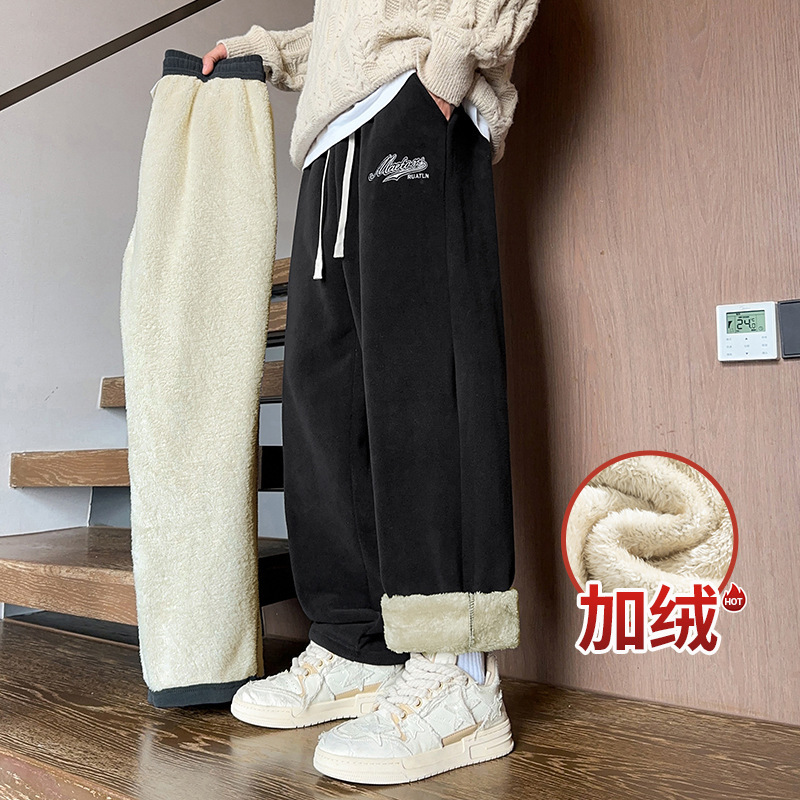 어린 양 벨벳 바지 소년 겨울 2024 새로운 기모 두껍게 된 남자의 캐주얼 면 바지 기모 두꺼운 가을 겨울스토어 가기