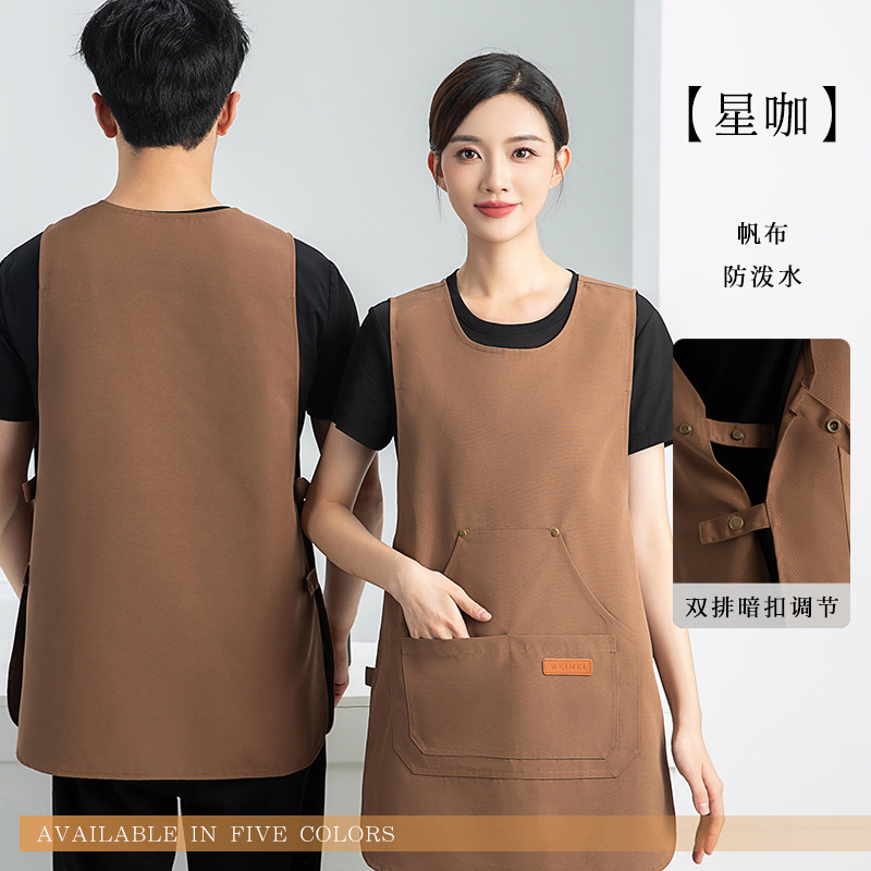 밀크티 조끼 스타일 방수 인쇄 주방 미용실 바리스타 작업복 앞치마 특수 방수 인쇄 로고