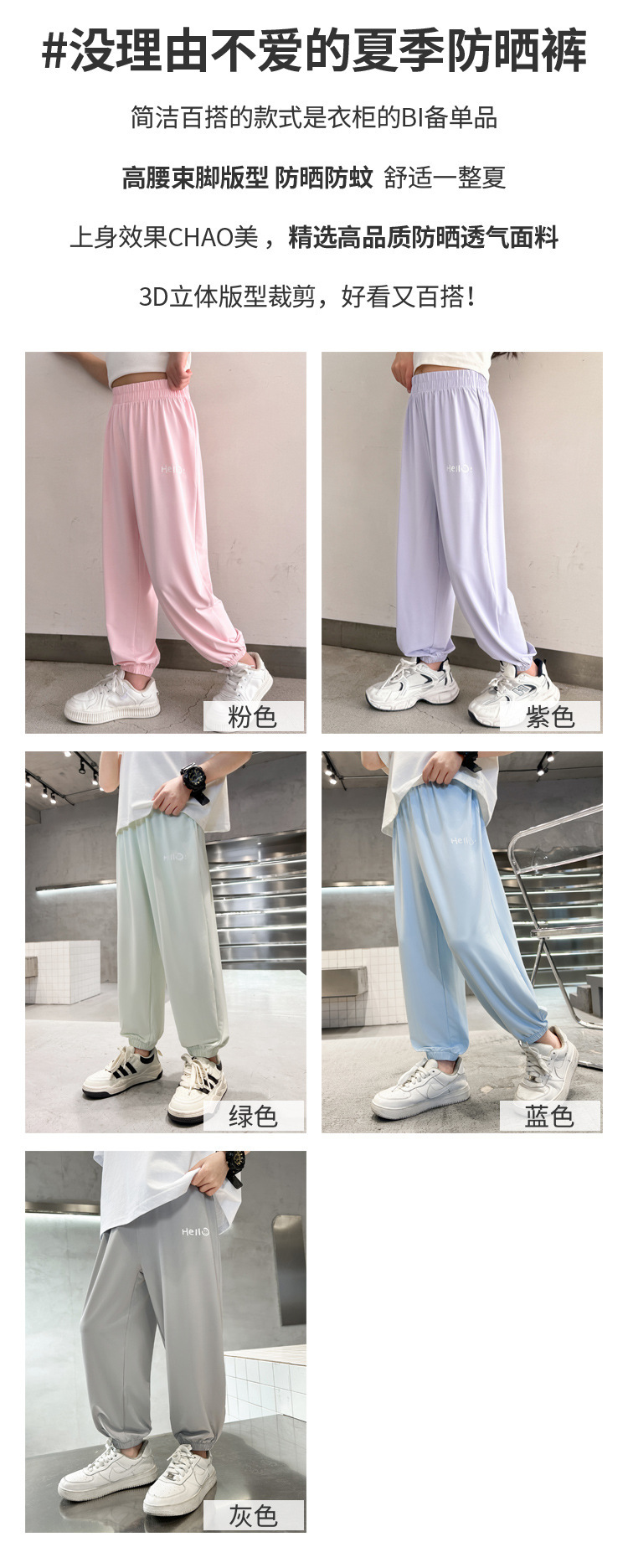 아동용 자외선 차단 바지, 여름용 얇고 통기성이 뛰어난 캐주얼 모기 방지 바지, 남아 및 여아용 속건 바지, 아이스 실크 통기성 및 시원한 느낌스토어 가기