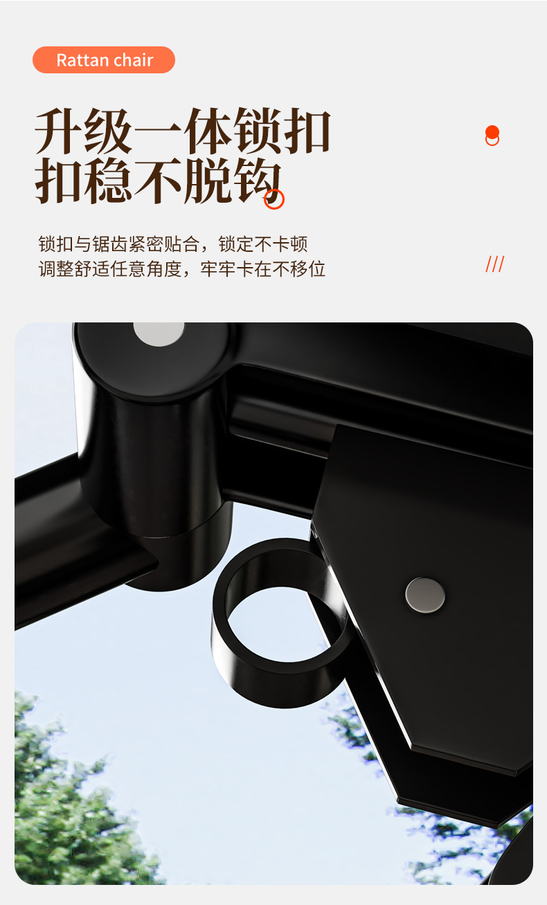 • 두꺼운 사각형 튜브 등나무 알루미늄 합금 잠금 장치 + 컵 홀더 + 검정색 4D 메쉬 패드