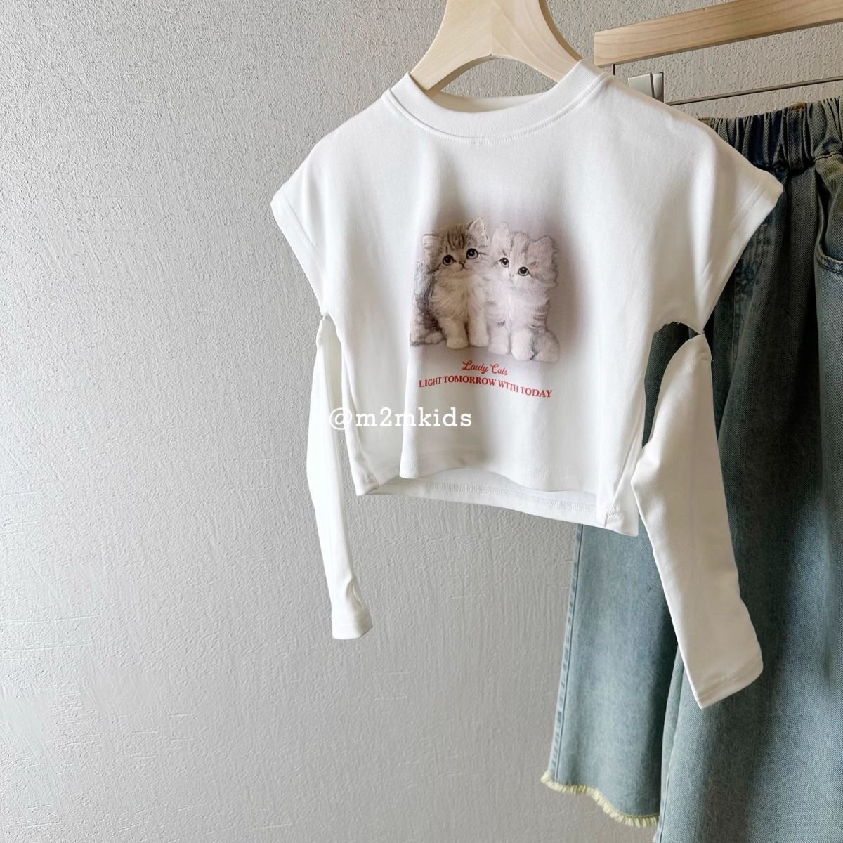 여아 봄, 가을 티셔츠, 유아 패션, 아동 맞춤형 트렌디 브랜드, 패셔너블한 인터넷 연예인 만화 프린트 찢어진 바닥 셔츠스토어 가기