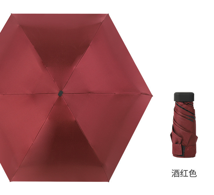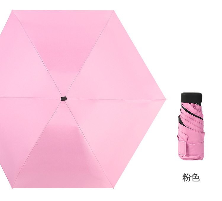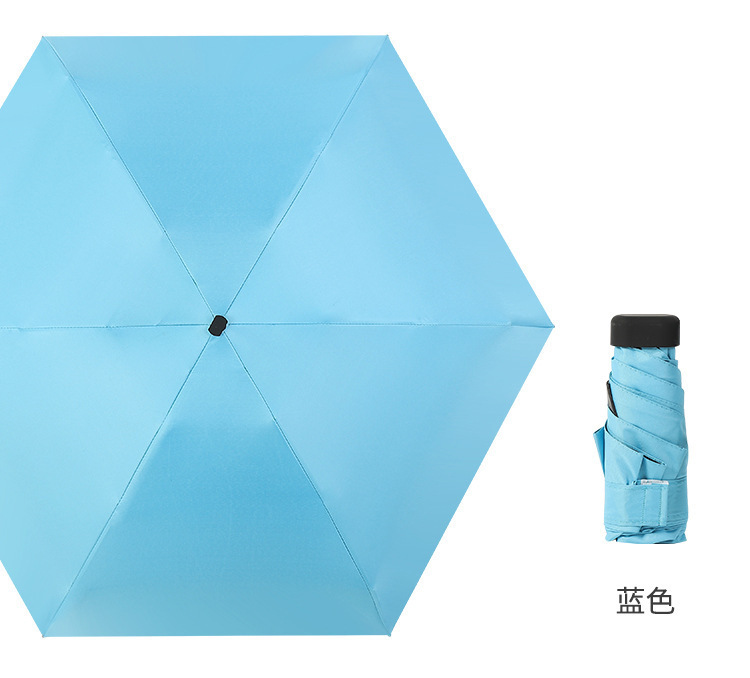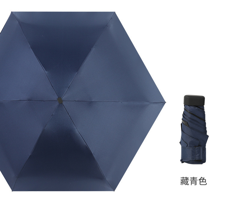 인쇄 된 로고 검은 고무 우산 자외선 차단제 6 본 평면 5 배 우산 창조적 인 가방 우산 여성 이중 사용 비 우산