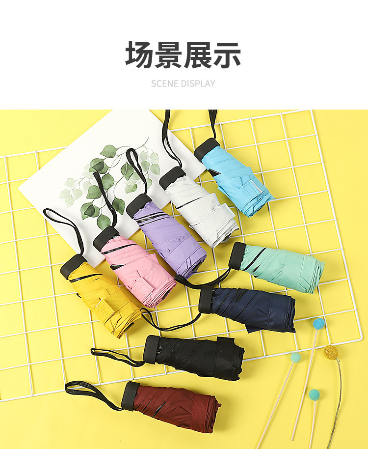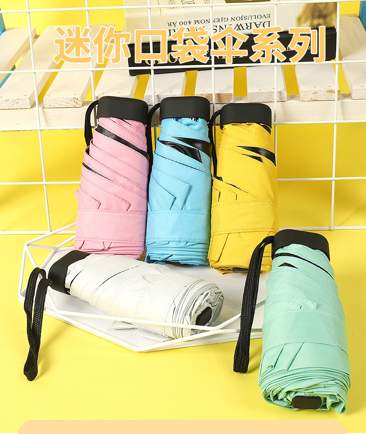인쇄 된 로고 검은 고무 우산 자외선 차단제 6 본 평면 5 배 우산 창조적 인 가방 우산 여성 이중 사용 비 우산스토어 가기