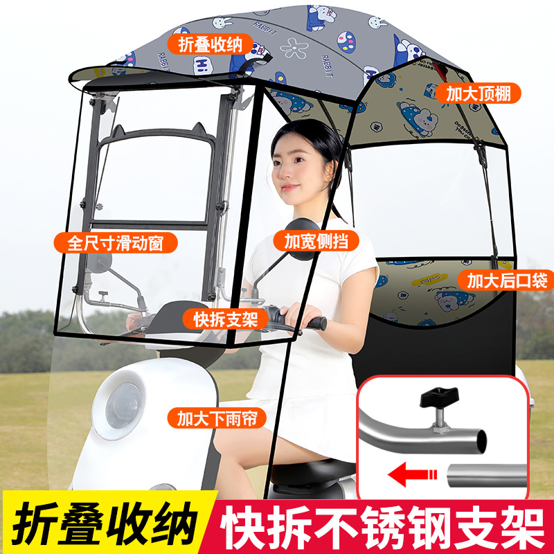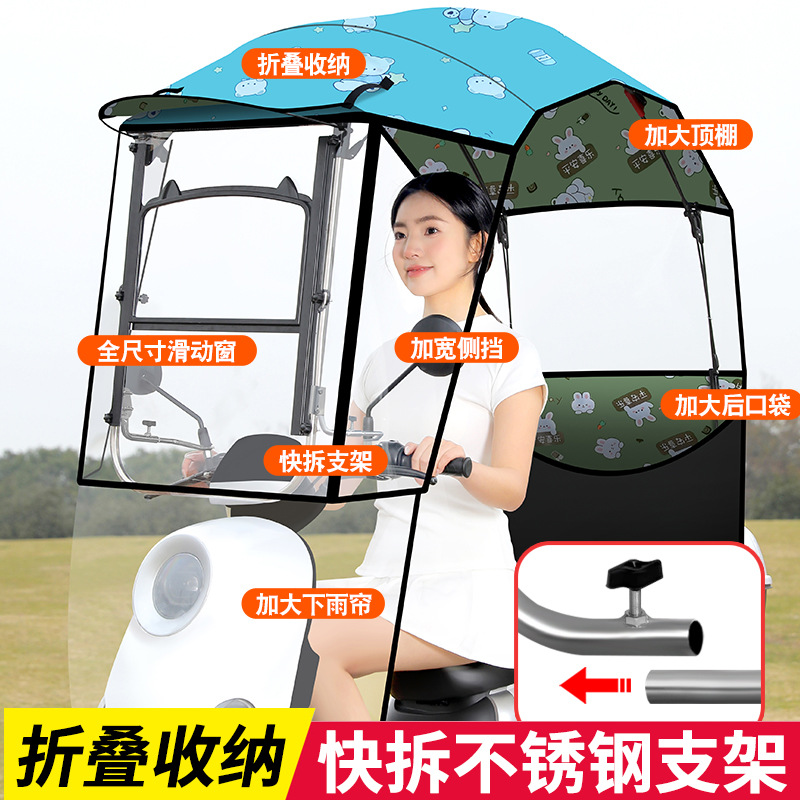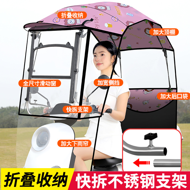 전기 자동차 캐노피 새로운 배터리 오토바이 태양 보호 비 보호 앞 유리 태양열 이동식 안전 우산스토어 가기