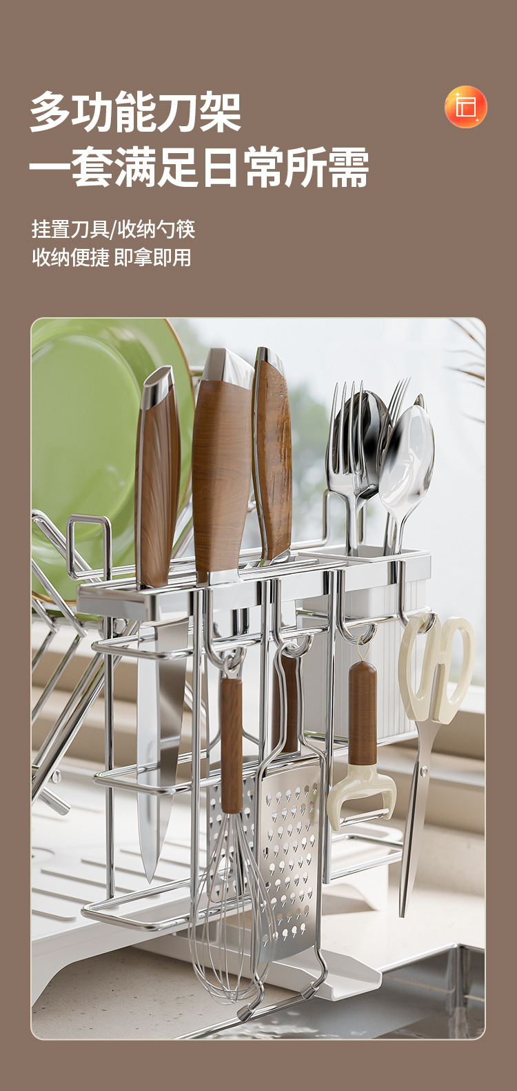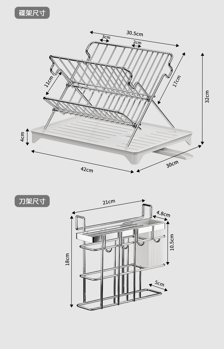 • 스테인레스 스틸 접이식 접시걸이 + 칼과 젓가락 꽂이 실버
