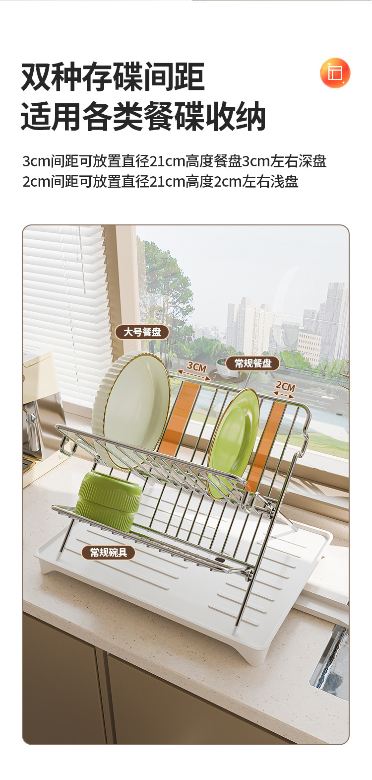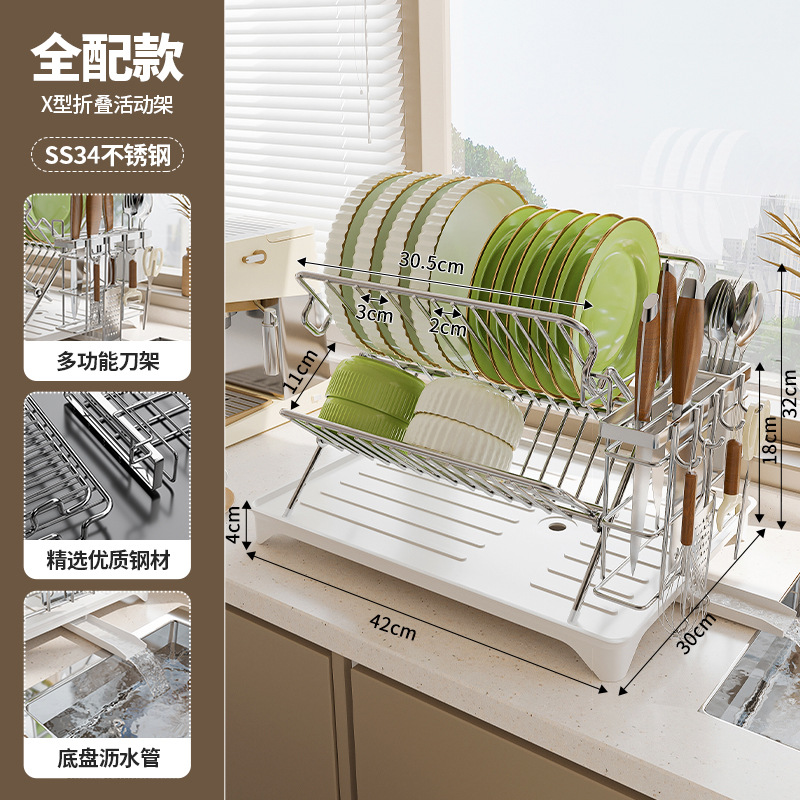 • 스테인레스 스틸 접이식 접시 랙 실버