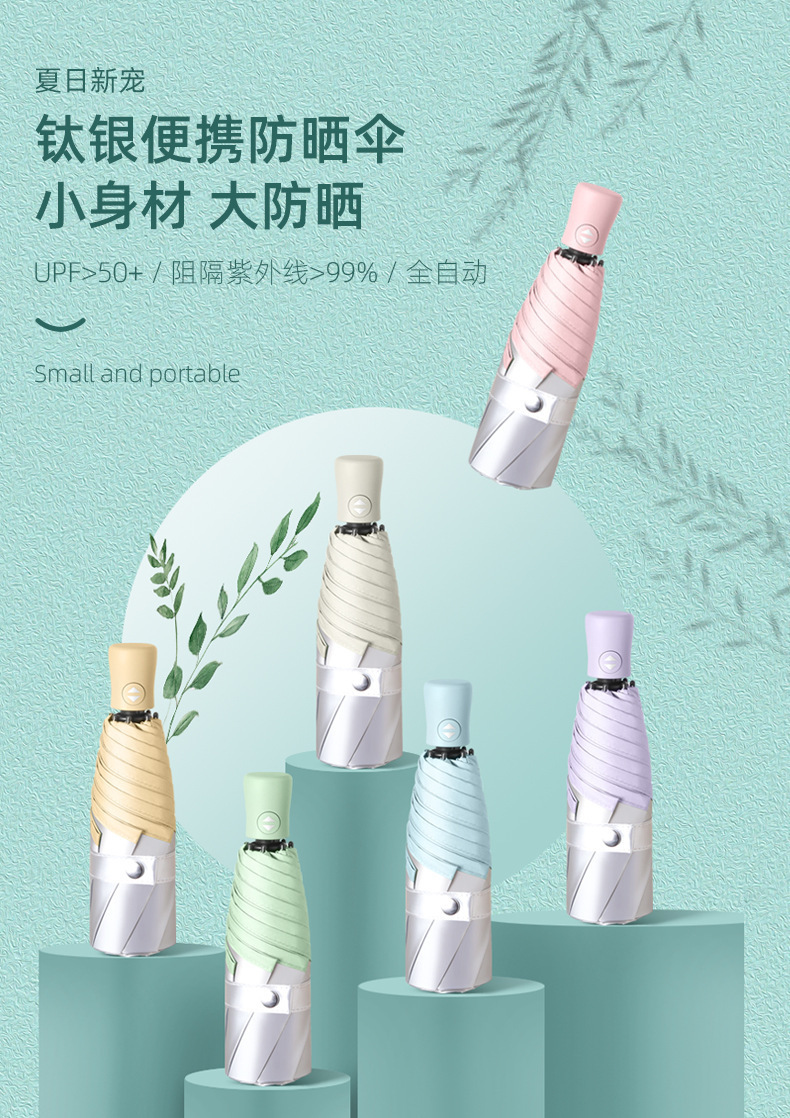 세븐 본 5 배 자동 우산 티타늄 실버 접착제 선 스크린 우산 여성용 접는 태양 우산스토어 가기