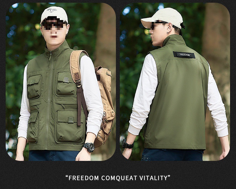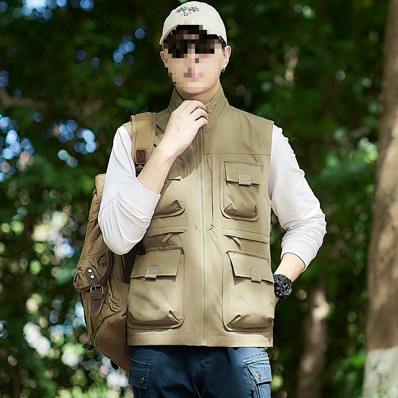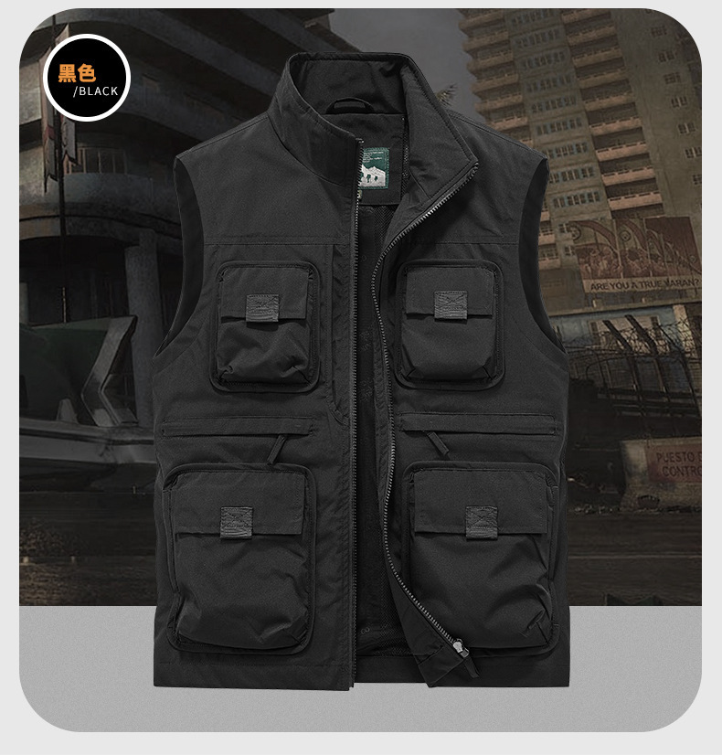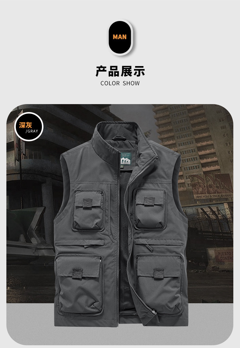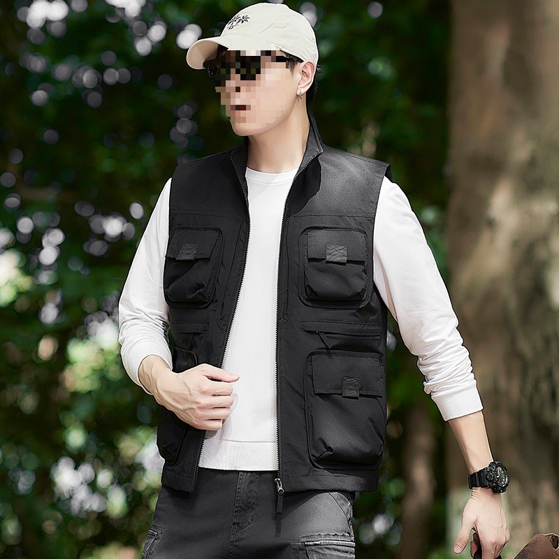 2023 새로운 가을 남자 멀티 포켓 느슨한 캐주얼 야외 낚시 사진 툴링 캐주얼 싱글 조끼 8899