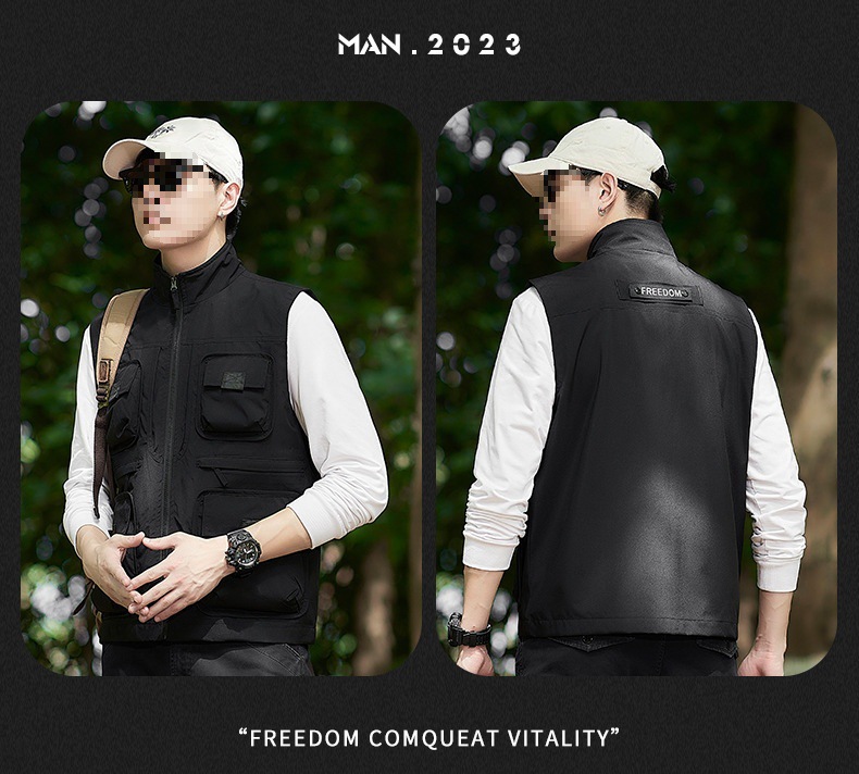 2023 새로운 가을 남자 멀티 포켓 느슨한 캐주얼 야외 낚시 사진 툴링 캐주얼 싱글 조끼 8899스토어 가기