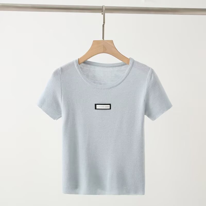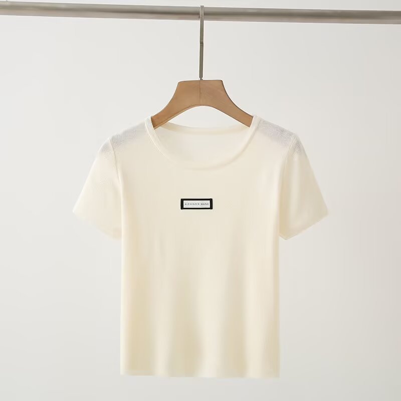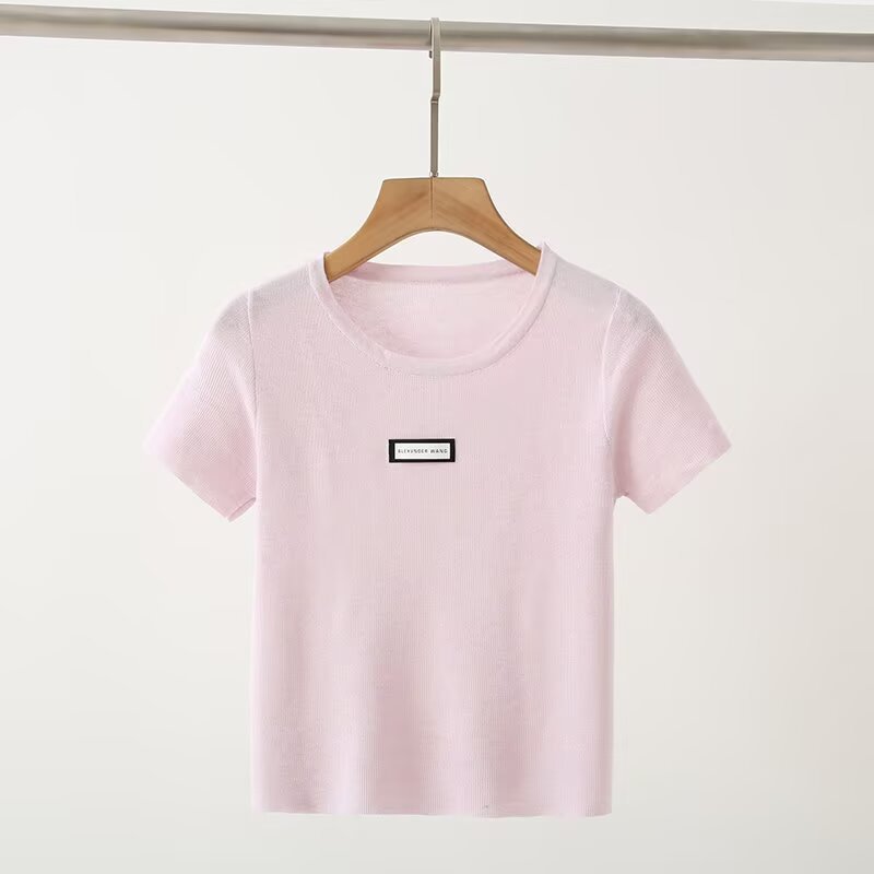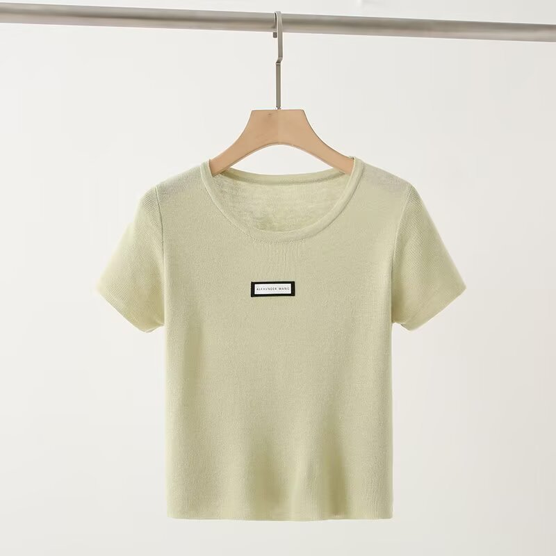 UC & ZA 국경 대외 무역 여성 2025 년 여름 새로운 라운드 넥 장식 짧은 슬림 핏 반팔 니트 스웨터스토어 가기