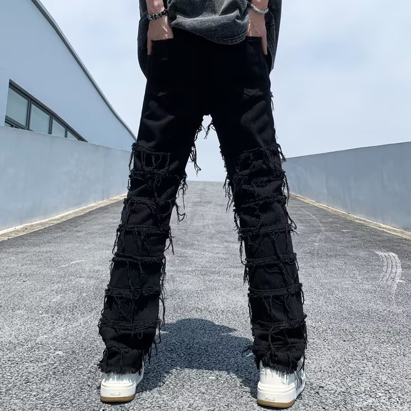 국경을 넘는 새로운 남성 데님 스트레이트 레그 팬츠 유럽과 미국의 스트리트 패션 인 폭발성 스트레치 패드 데님 스트레이트 레그 팬츠스토어 가기