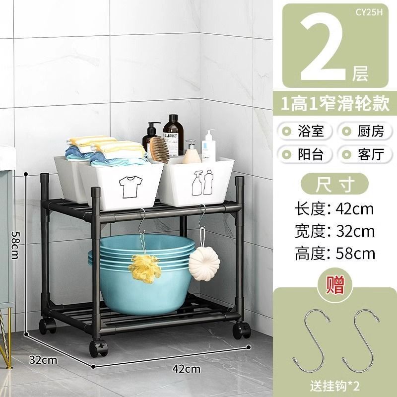 • 2단 높이 세면대 스탠드 + 무료 범용 바퀴 및 후크