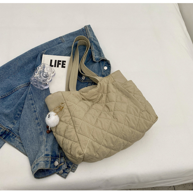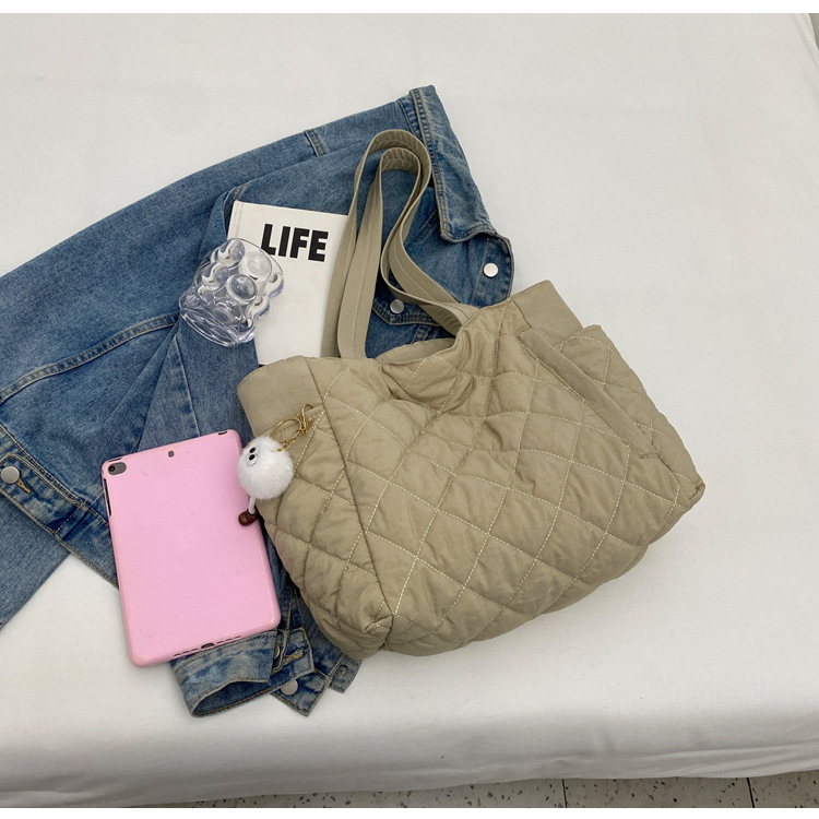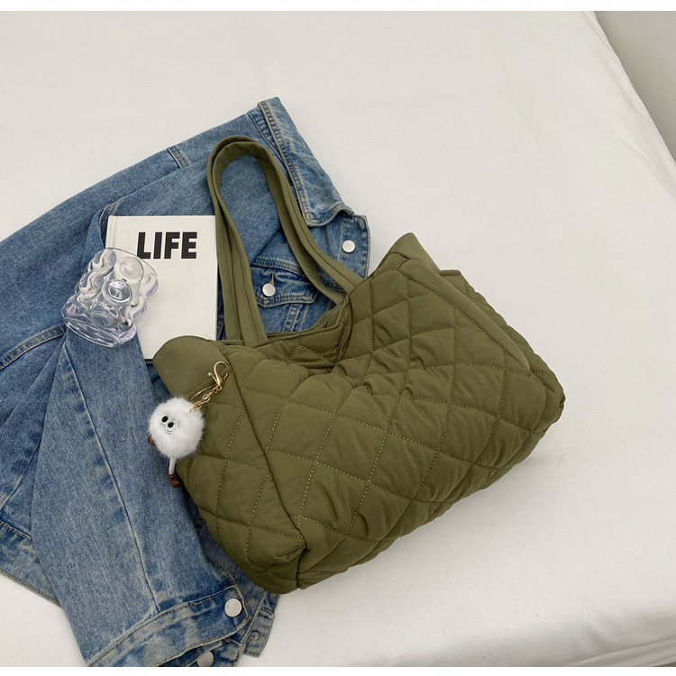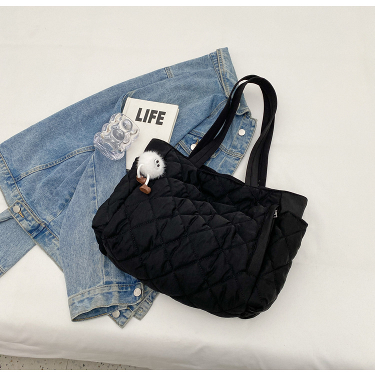 소스 제조업체의 대용량 마름모 면 가방, 트렌디하고 패셔너블한 나일론 숄더백, 여성용 캐주얼 통근 토트백스토어 가기
