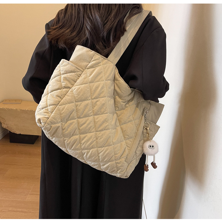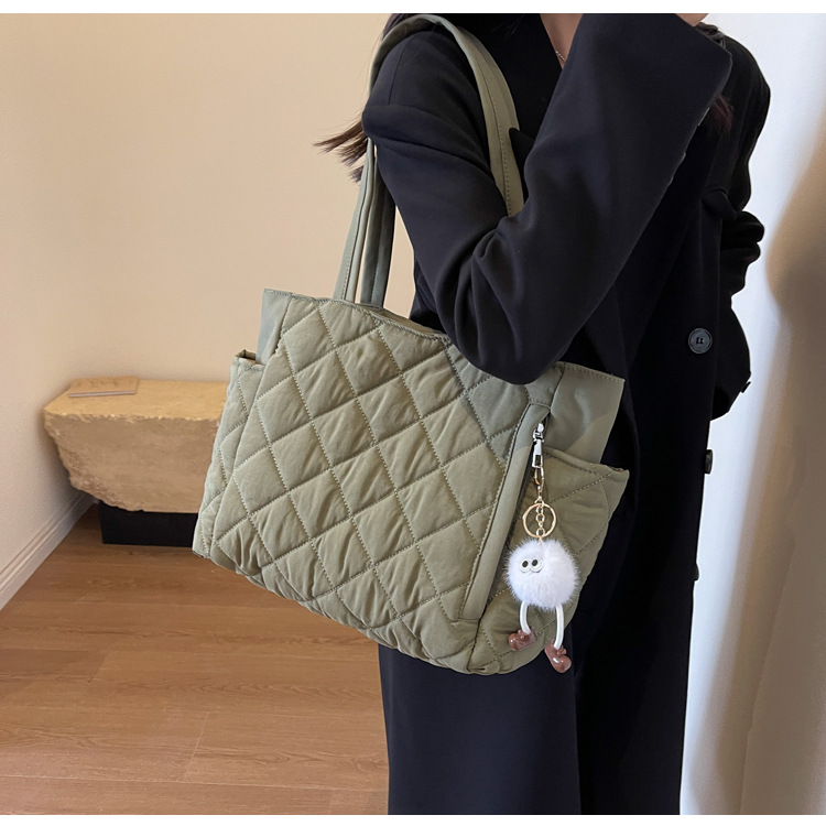 소스 제조업체의 대용량 마름모 면 가방, 트렌디하고 패셔너블한 나일론 숄더백, 여성용 캐주얼 통근 토트백
