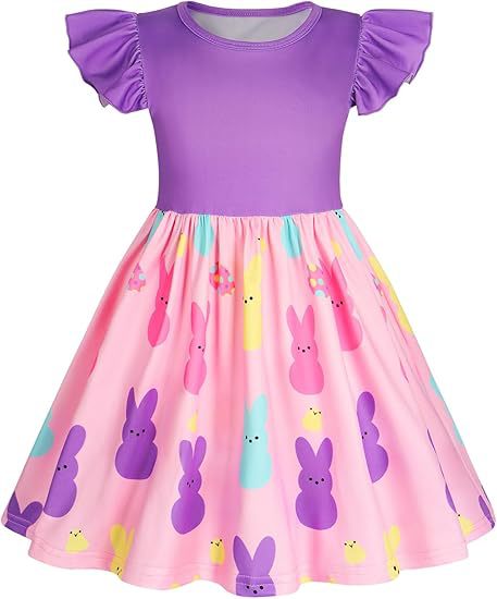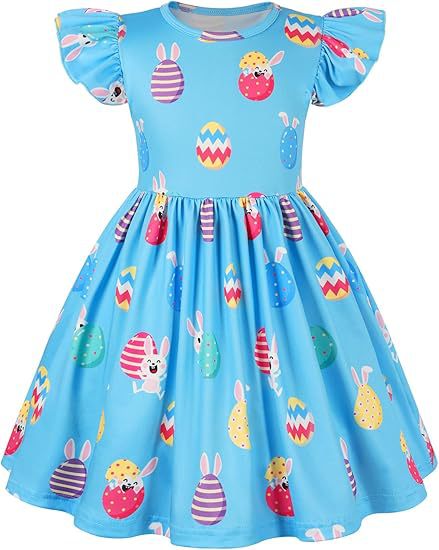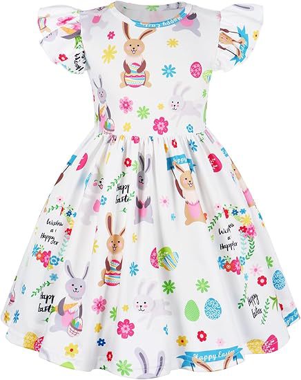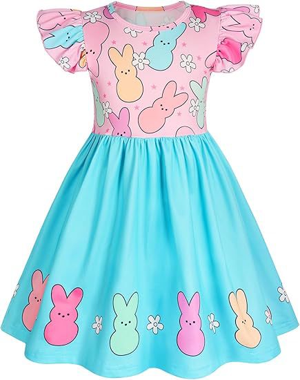 2025 국경 간 여름 소녀 드레스 새로운 의류 아동 의류 소녀 부활절 토끼 프린트 플라잉 슬리브 스커트스토어 가기