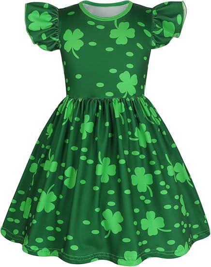 2025 국경 간 여름 소녀 드레스 새로운 의류 아동 의류 소녀 부활절 토끼 프린트 플라잉 슬리브 스커트