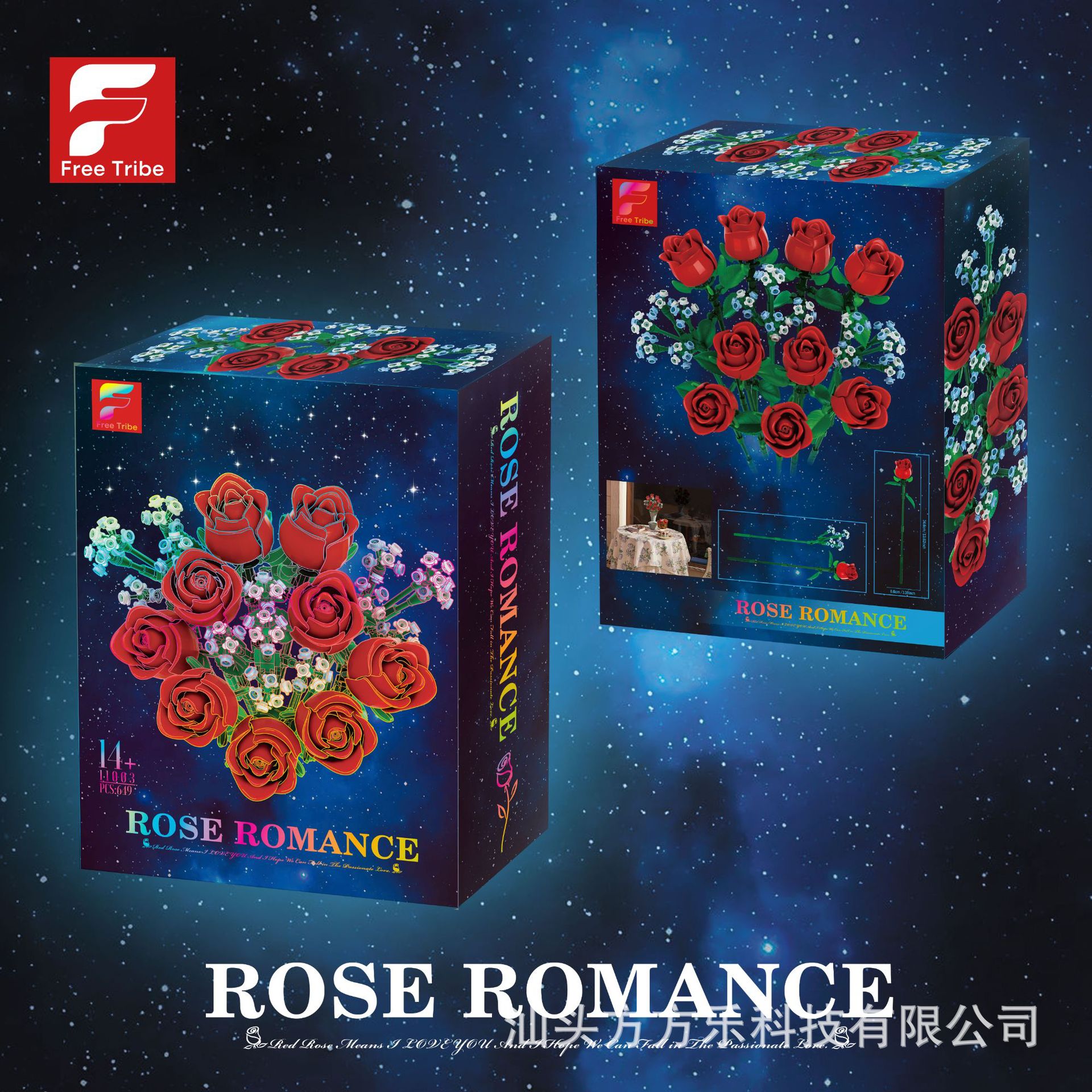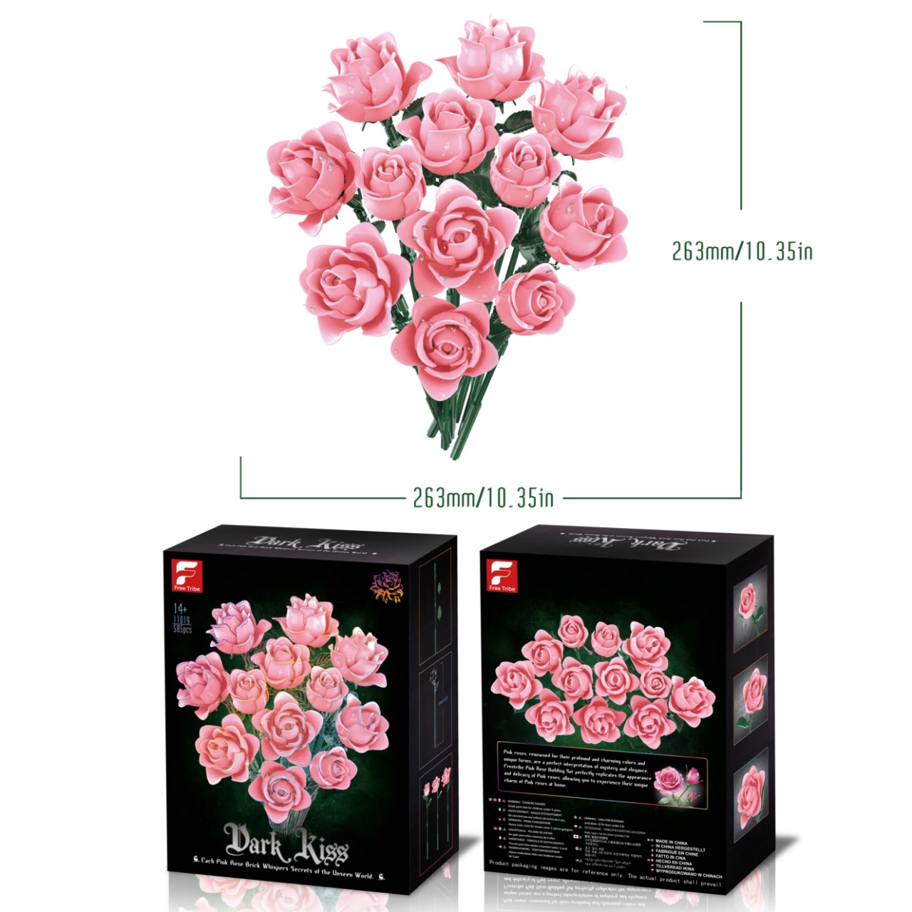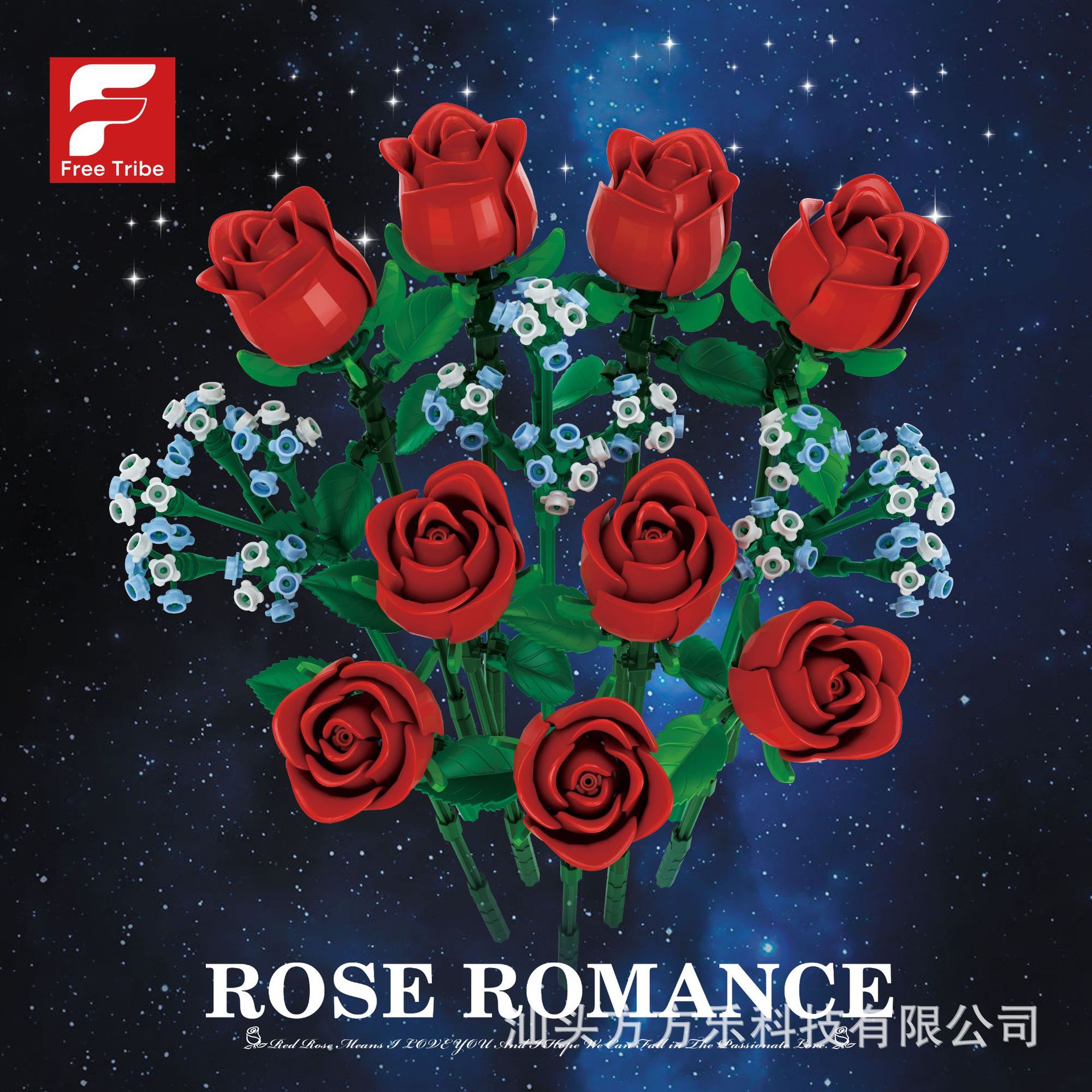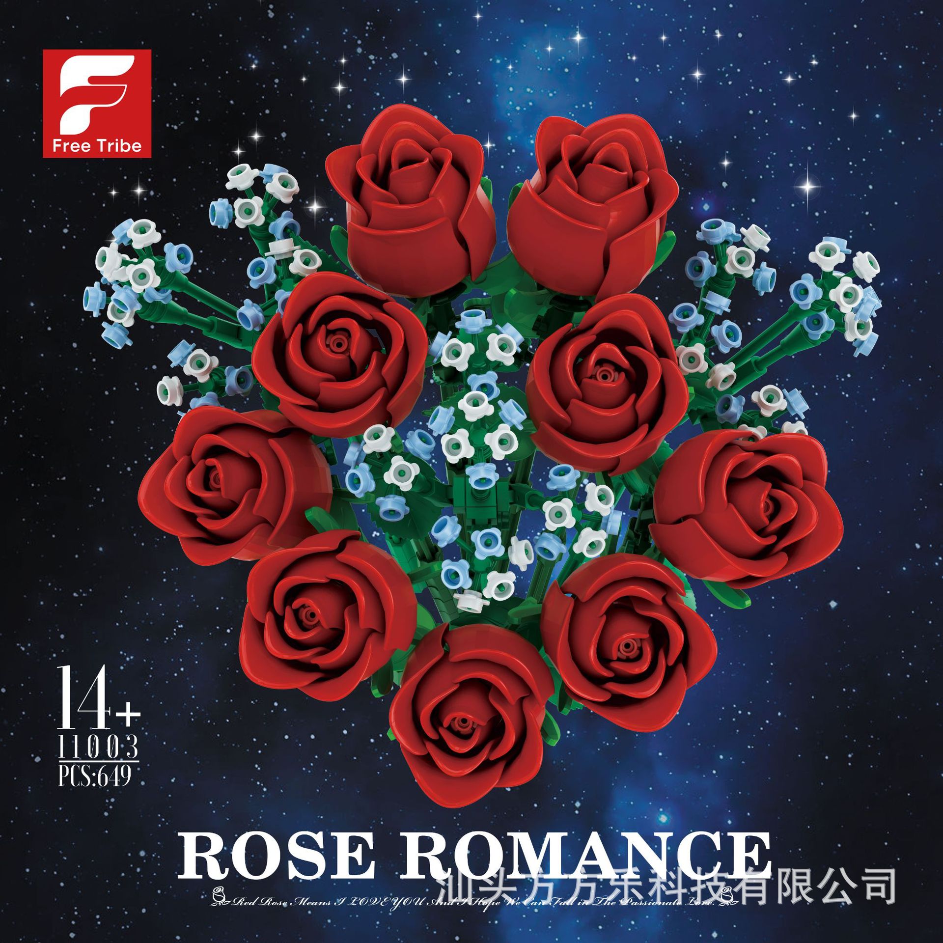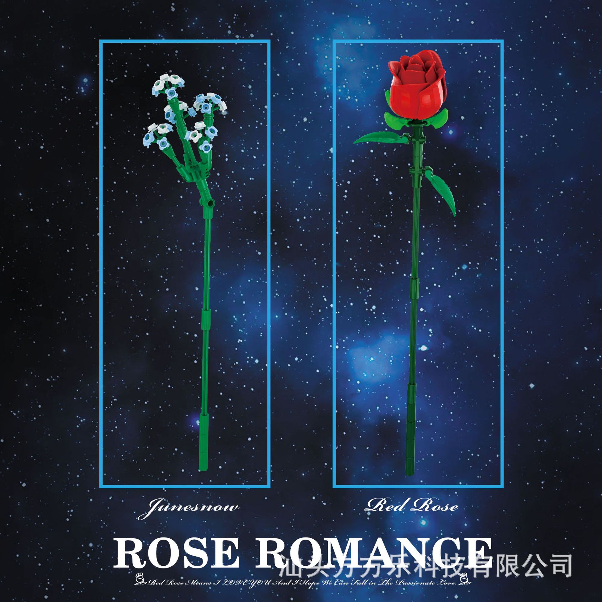 국경을 넘는 호환성 작은 꽃다발 DIY 영구적인 검은 장미 창의적인 장식품 교육용 블록 장난감 도매스토어 가기