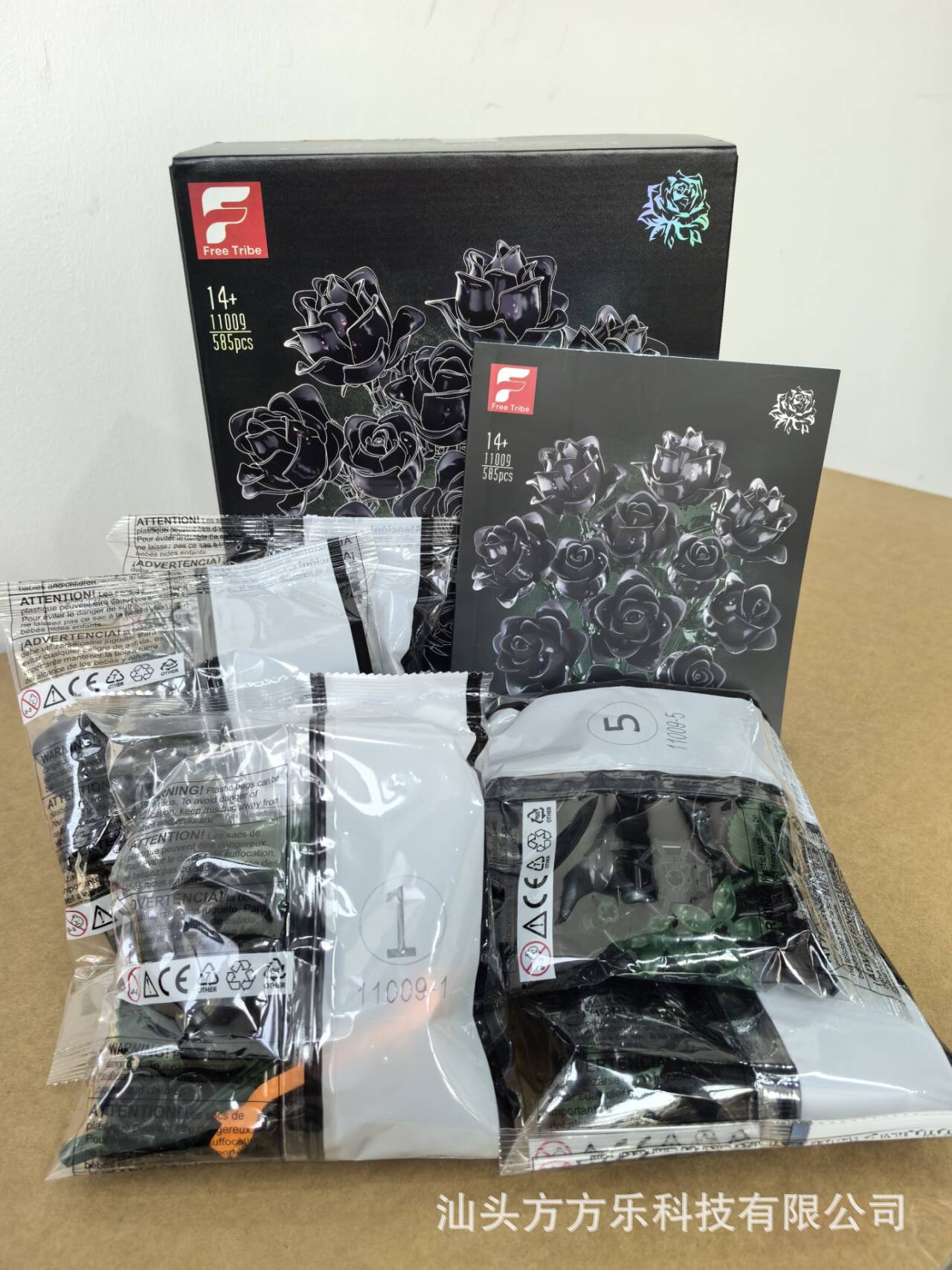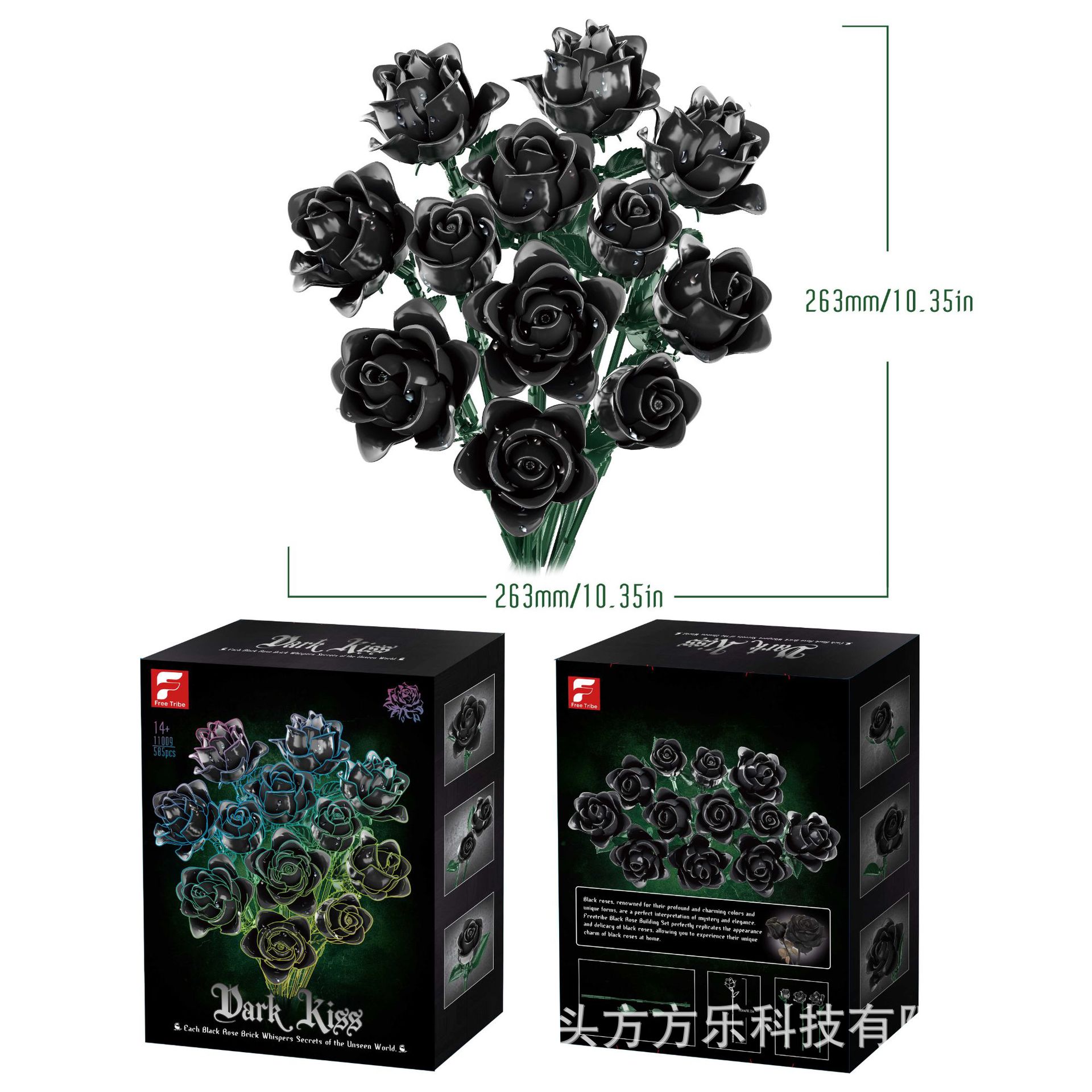 국경을 넘는 호환성 작은 꽃다발 DIY 영구적인 검은 장미 창의적인 장식품 교육용 블록 장난감 도매