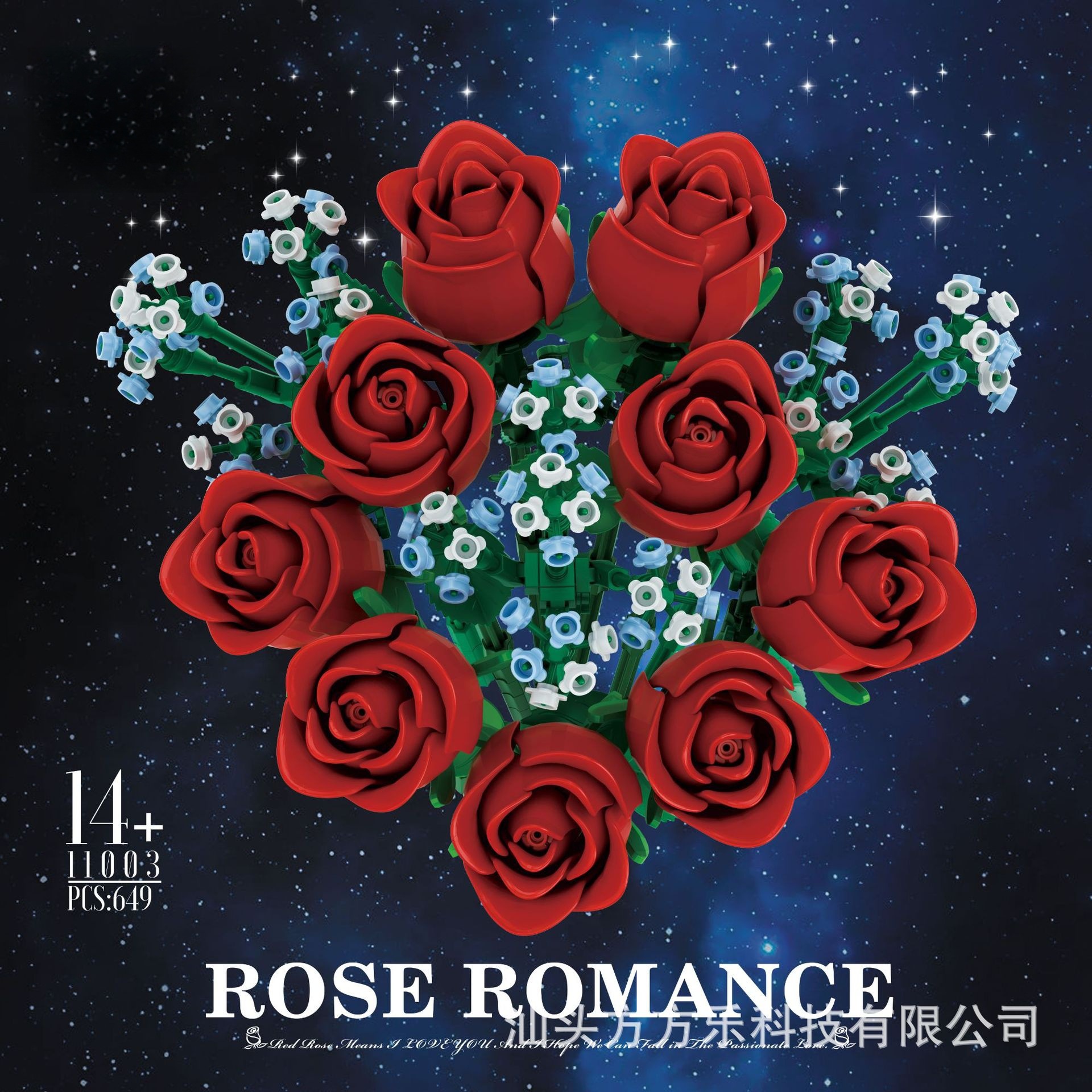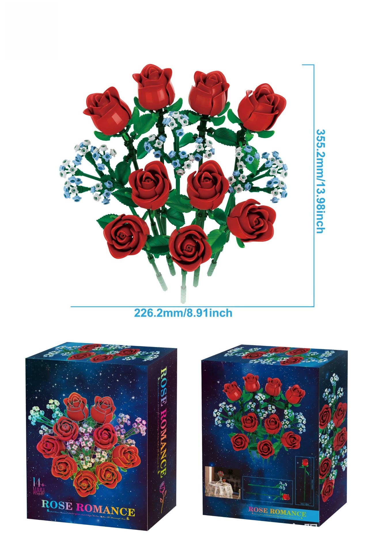국경을 넘는 호환성 소형 꽃다발 DIY 영원한 장미 시리즈 창의적 장식품 교육용 블록 장난감 도매