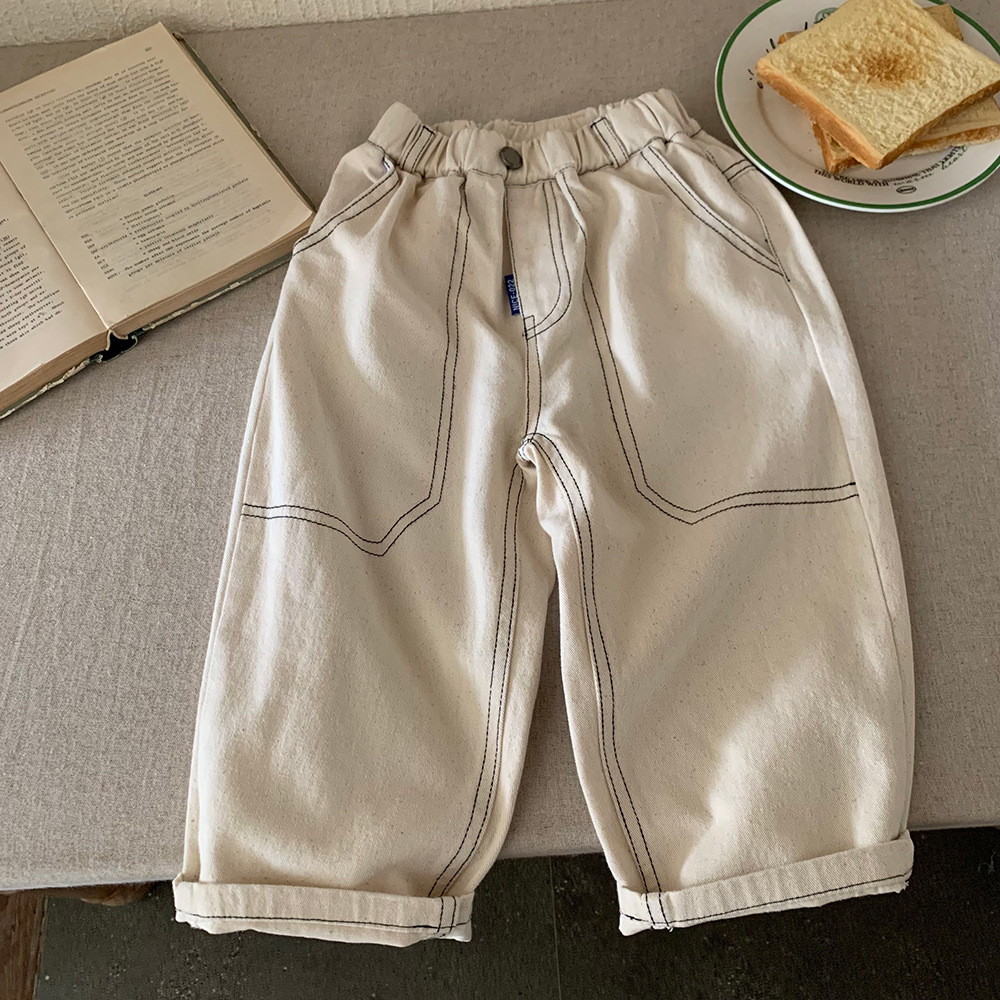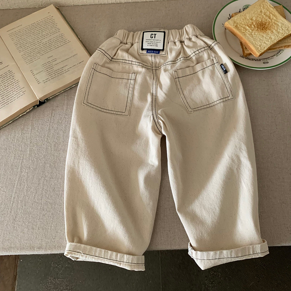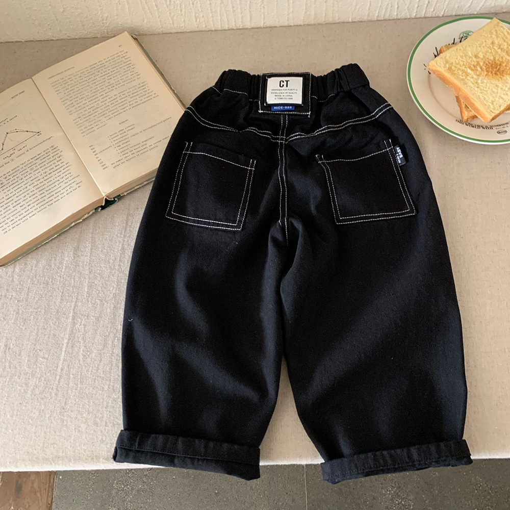 어린이 바지 2025 가을 새 소년과 소녀 솔리드 컬러 느슨한 캐주얼 바지 아기의 올 매치 외부 착용 면 작업복스토어 가기
