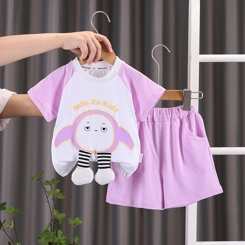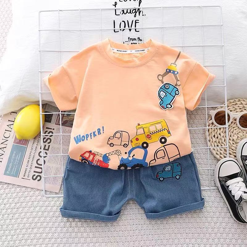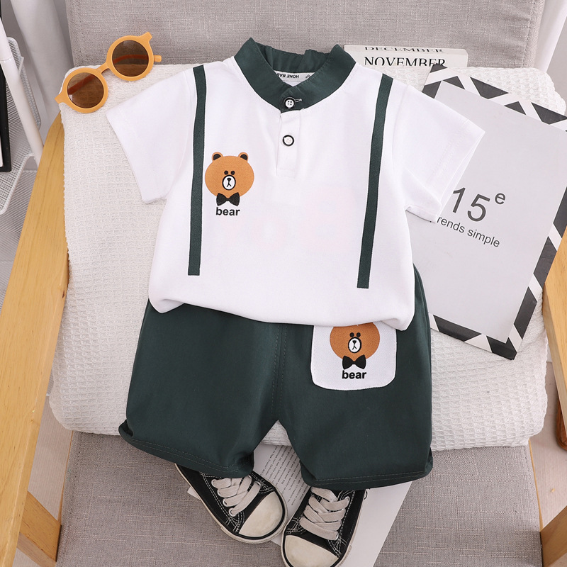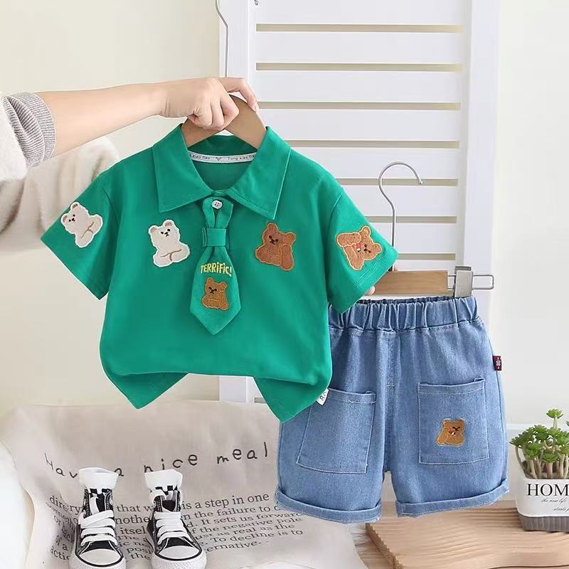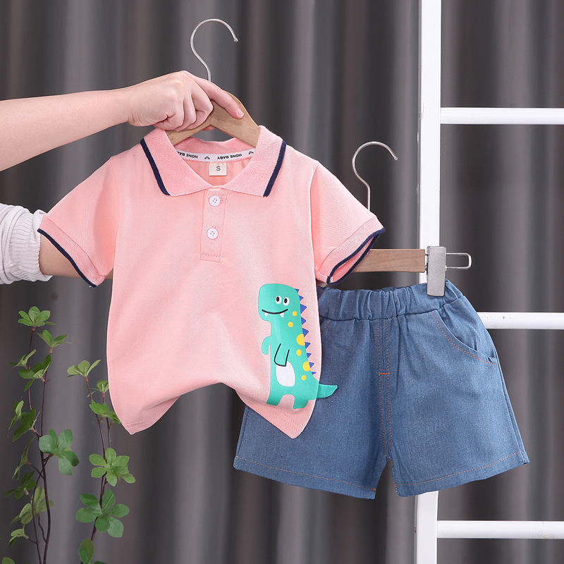 여름 새 소년 소녀 반팔 티셔츠 폴로 셔츠 세트 0-5 세 아기 여름 의류 투피스 세트스토어 가기