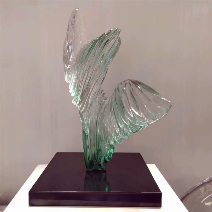 높은 거실 추상 창조적 인 날개 예술 조각을 비행 라이트 럭셔리 호텔 투명 수지 장식품