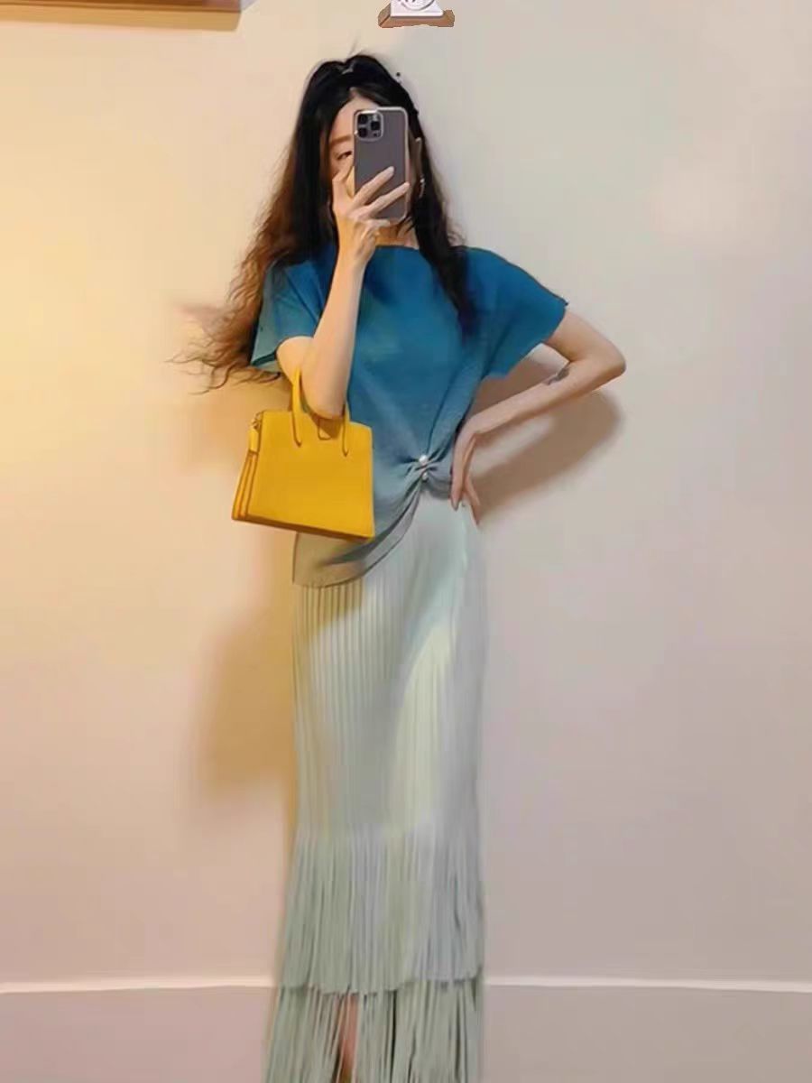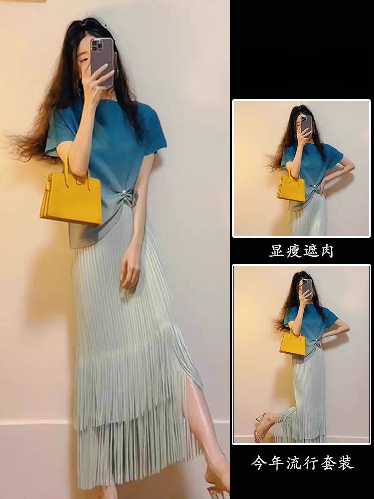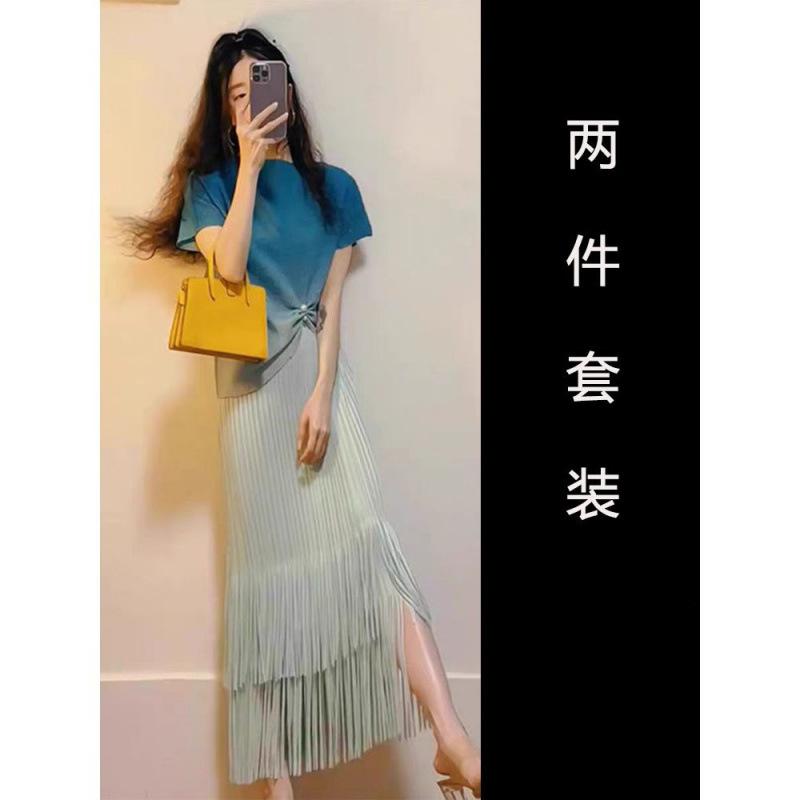 여름 도파민 착용 슬리밍 세트 2025 새로운 스타일 서양식 연령 감소 우아한 탑 스커트 투피스 세트스토어 가기
